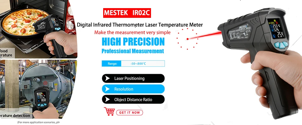 Инфракрасный термометр Mestek от-50 до 600, Бесконтактный лазерный ИК-термометр с ЖК-дисплеем, пирометр, тестер, цифровой термометр