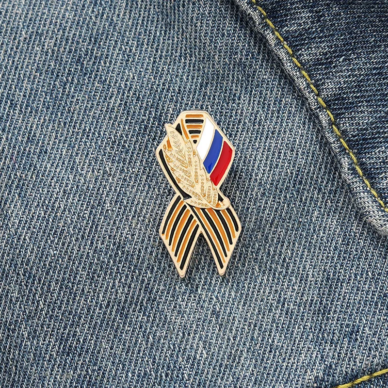 Персонализированная джинсовая брошь, брошь в виде пшеничных ушей, мемориальная Подарочная брошка из клена, эмалированные булавки, булавка в виде русского флага, булавка в виде Флага Святого Георгия