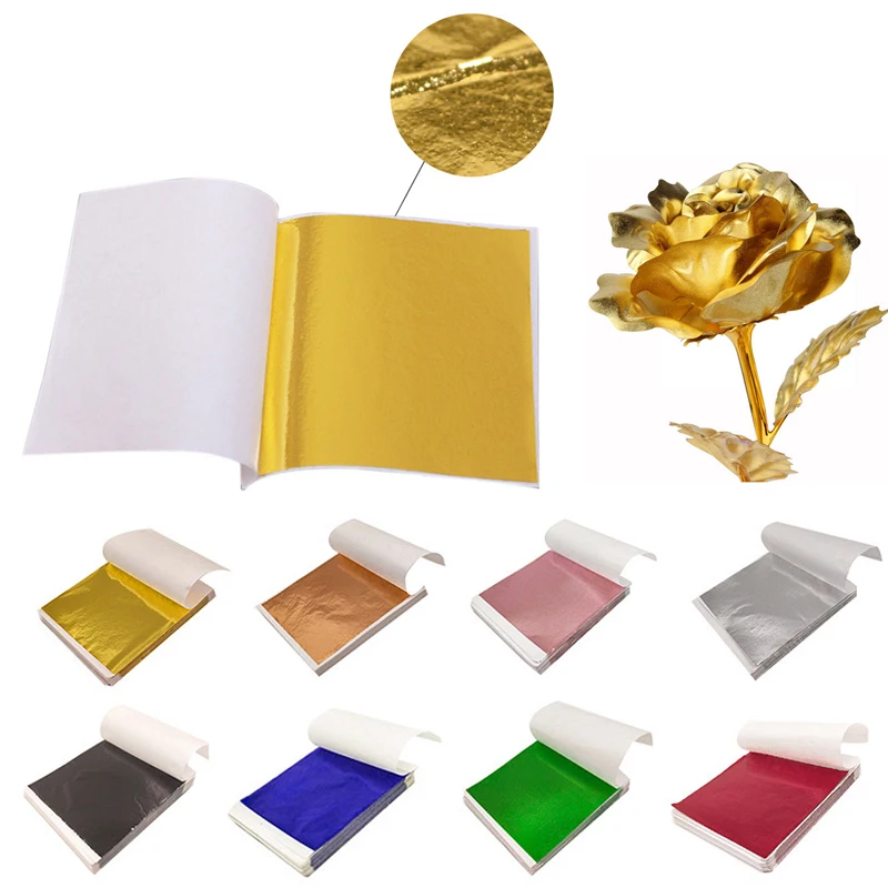 100 листов, бумажные листья из искусственной золотой и серебряной фольги