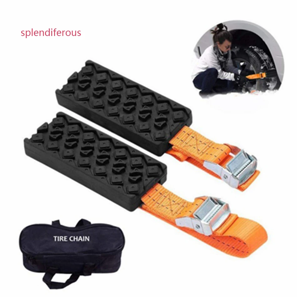 Splendiferous 2 шт прочный Противоскользящий PU автомобильный Тяговый ремень для шин Аварийная сумка Снежная грязь цепь для снега, используется для слякоти льда