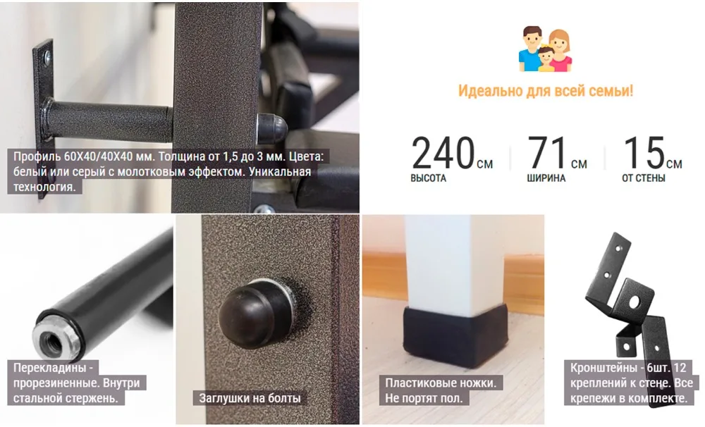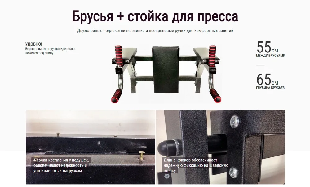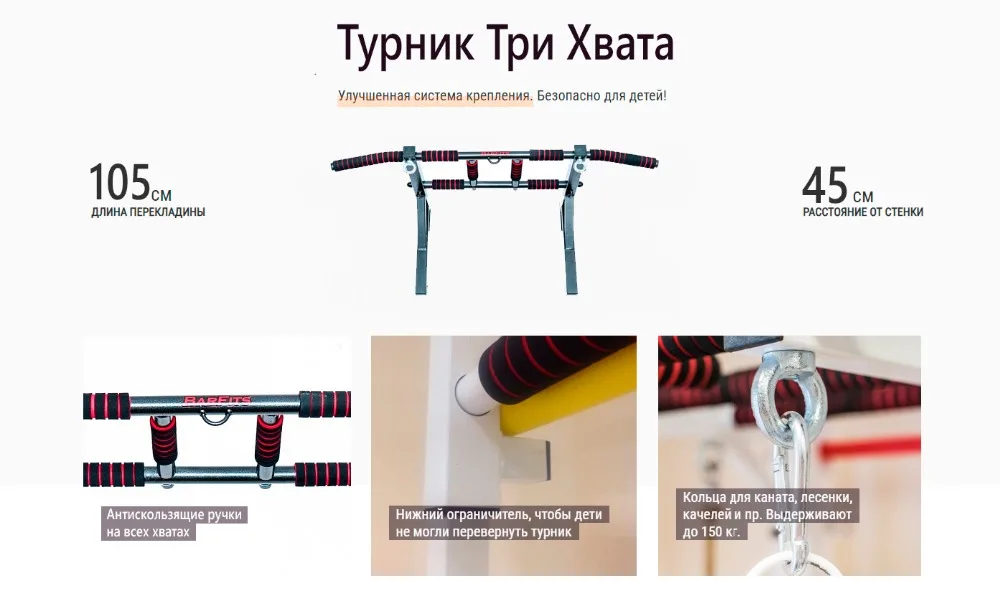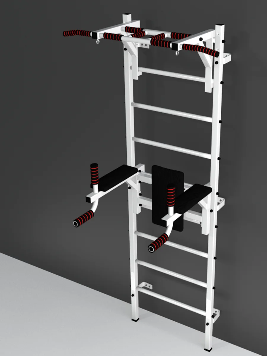 Шведская стенка BARFITS белая + турник "три хвата" + брусья навесные