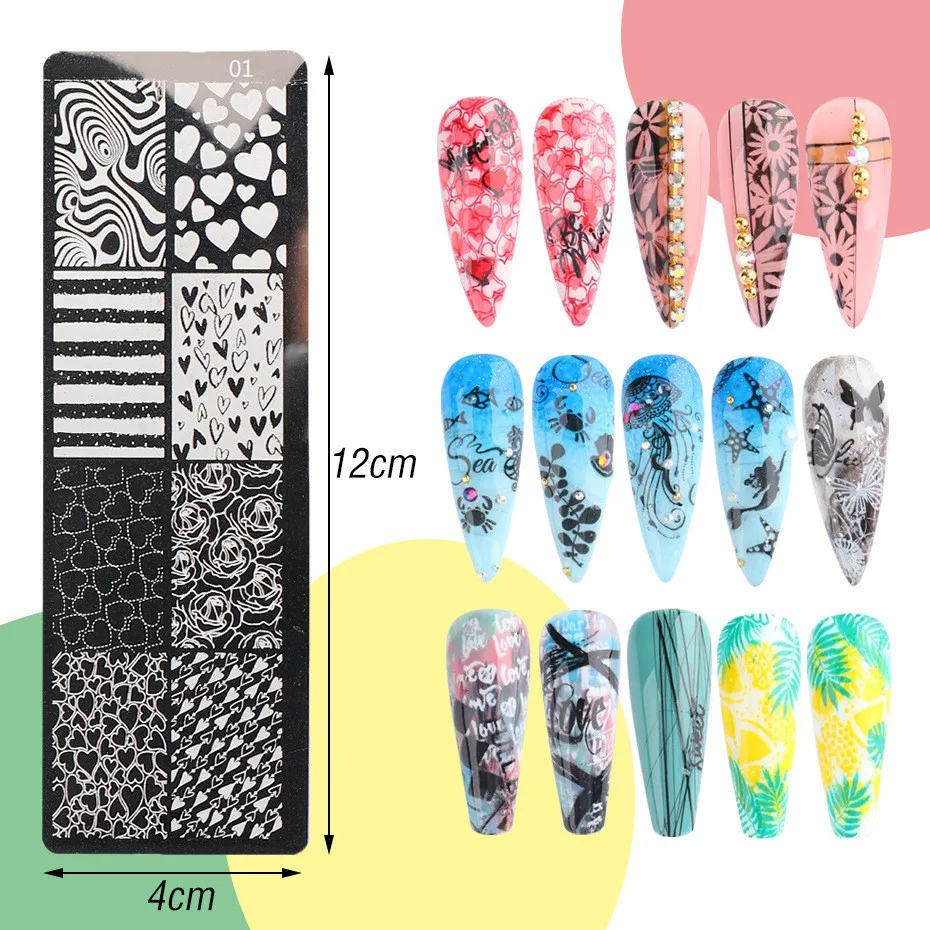 Штампы для ногтей, сердца и буквы геометрических рисунков, с цветам...