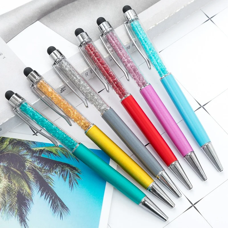 Металлическая ручка для подписи Хрустальная шариковая ручка Роскошная портативная вращающаяся емкостная сенсорная разноцветная шариковая ручка рекламный логотип на заказ