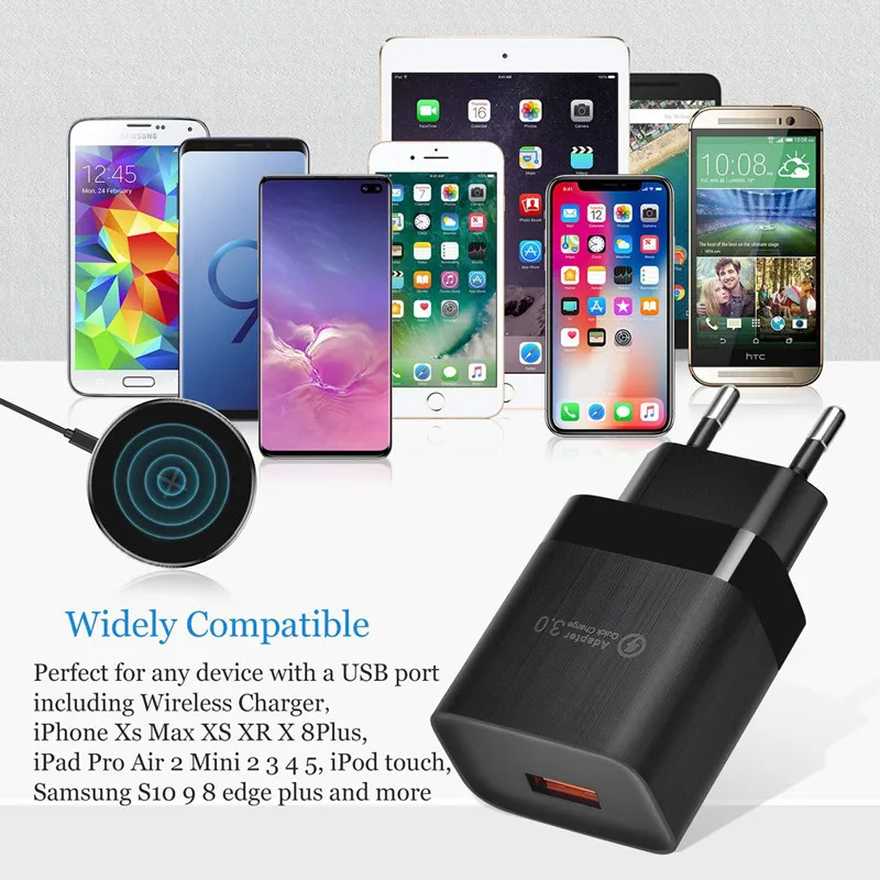 Зарядное устройство USB QC 3,0, 18 Вт, быстрая зарядка, дорожное настенное зарядное устройство, адаптер для быстрой зарядки для xiaomi mi 11 ultra huawei p20 lite samsung s10