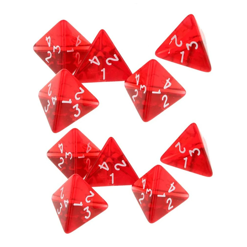 100 шт.компл. 20 мм 4-сторонние многогранные кости акриловые D4 DND RPG MTG кости прозрачный красный настольные игры Математика обучающая игра в кости комплект с сумкой в комплекте