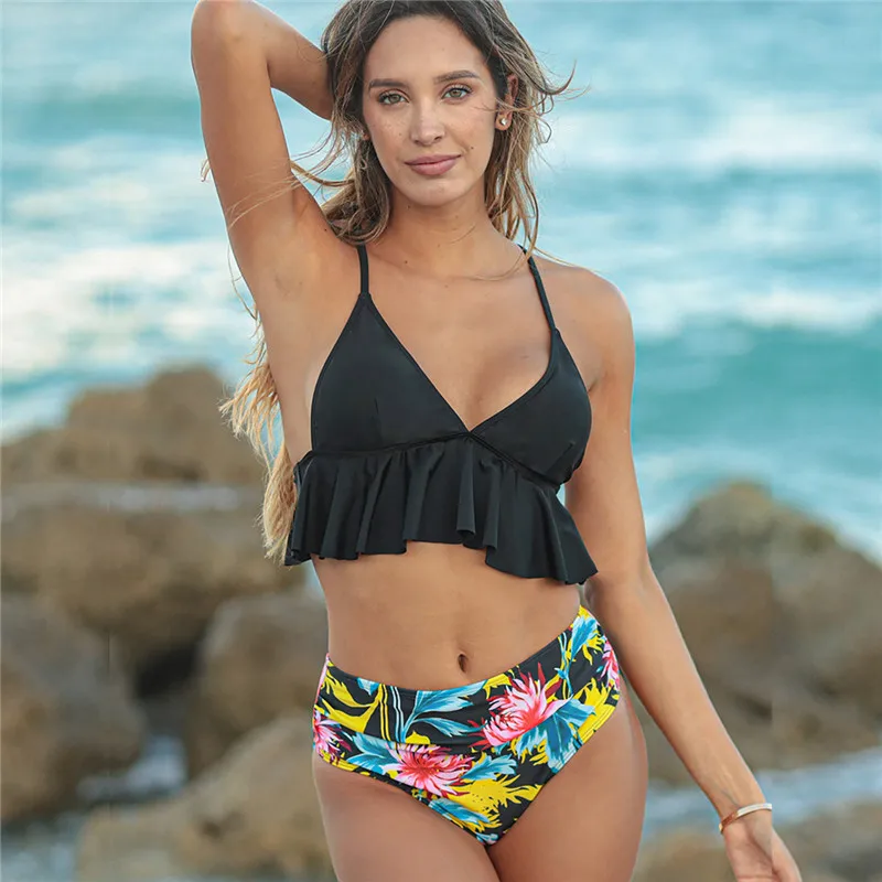 Комплект бикини с высокой талией, женский купальник 2022 с цветочны...