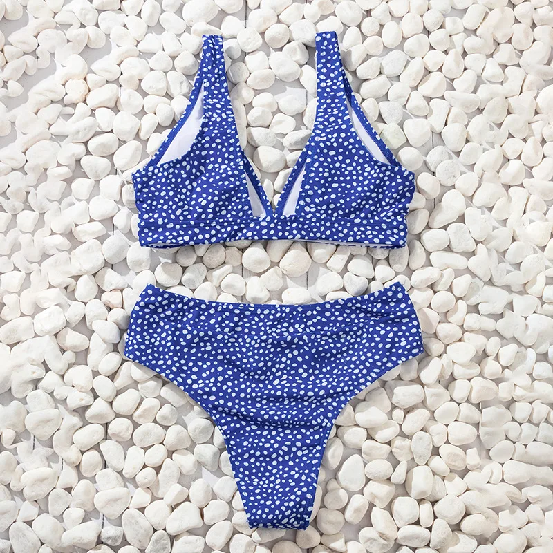 Купальник женский с принтом, пуш-ап, раздельный, высокая талия, 2 ш...