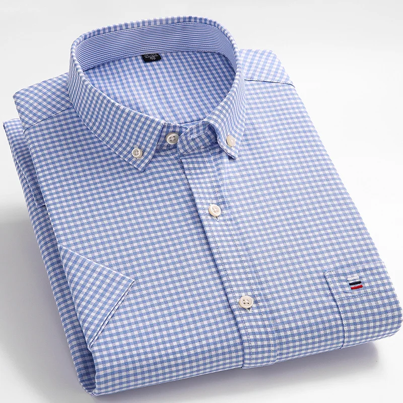 Новый S до 7XL с коротким рукавом 100% хлопок Оксфорд мягкий удобный классический крой размера плюс качество Лето Бизнес Мужские повседневные рубашки для мальчиков
