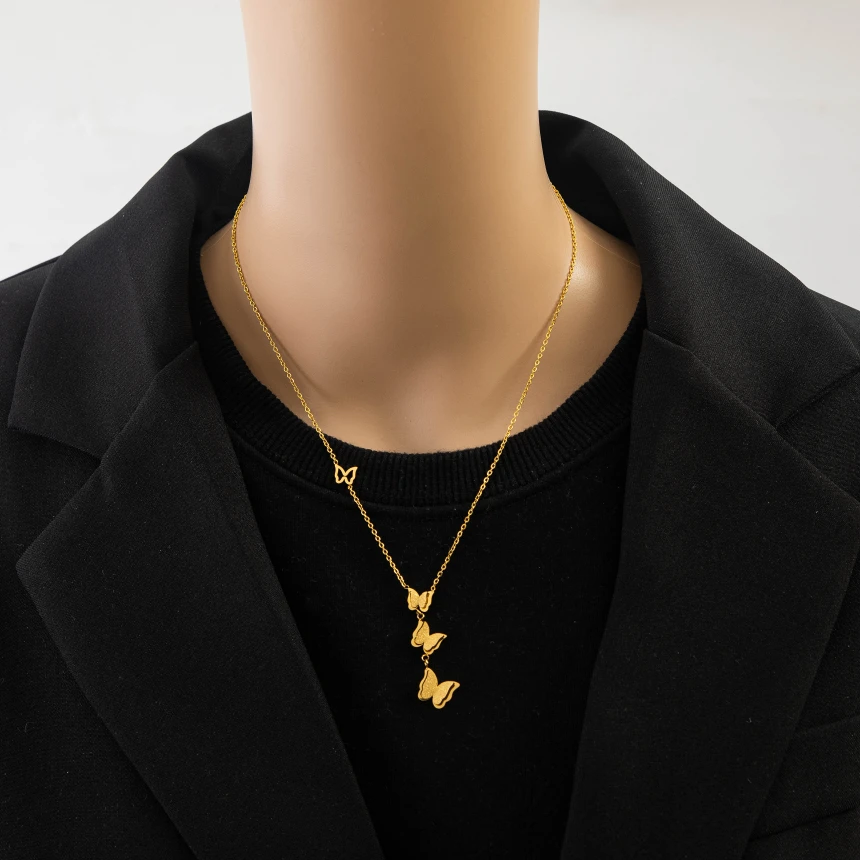 Цепочка-чокер из нержавеющей стали 316L с подвеской в виде бабочек