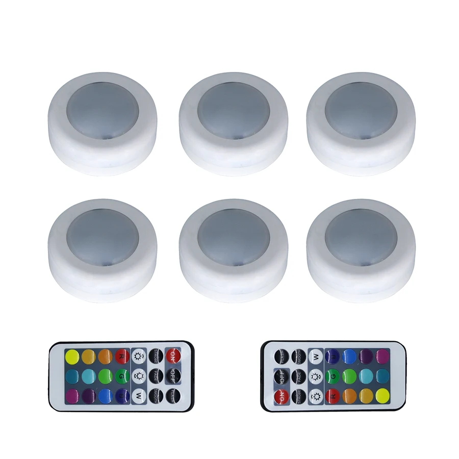12 цветов RGBW светодиодный светильник-шайба с дистанционным беспроводным освещением под шкафом светильник с батарейным питанием лампа ночного зала для шкафа коридора