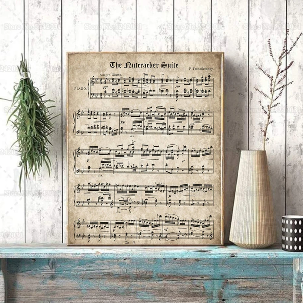 The nut cracker ВИНТАЖНЫЙ ПЛАКАТ с листовой музыкой и принтом Чайко...