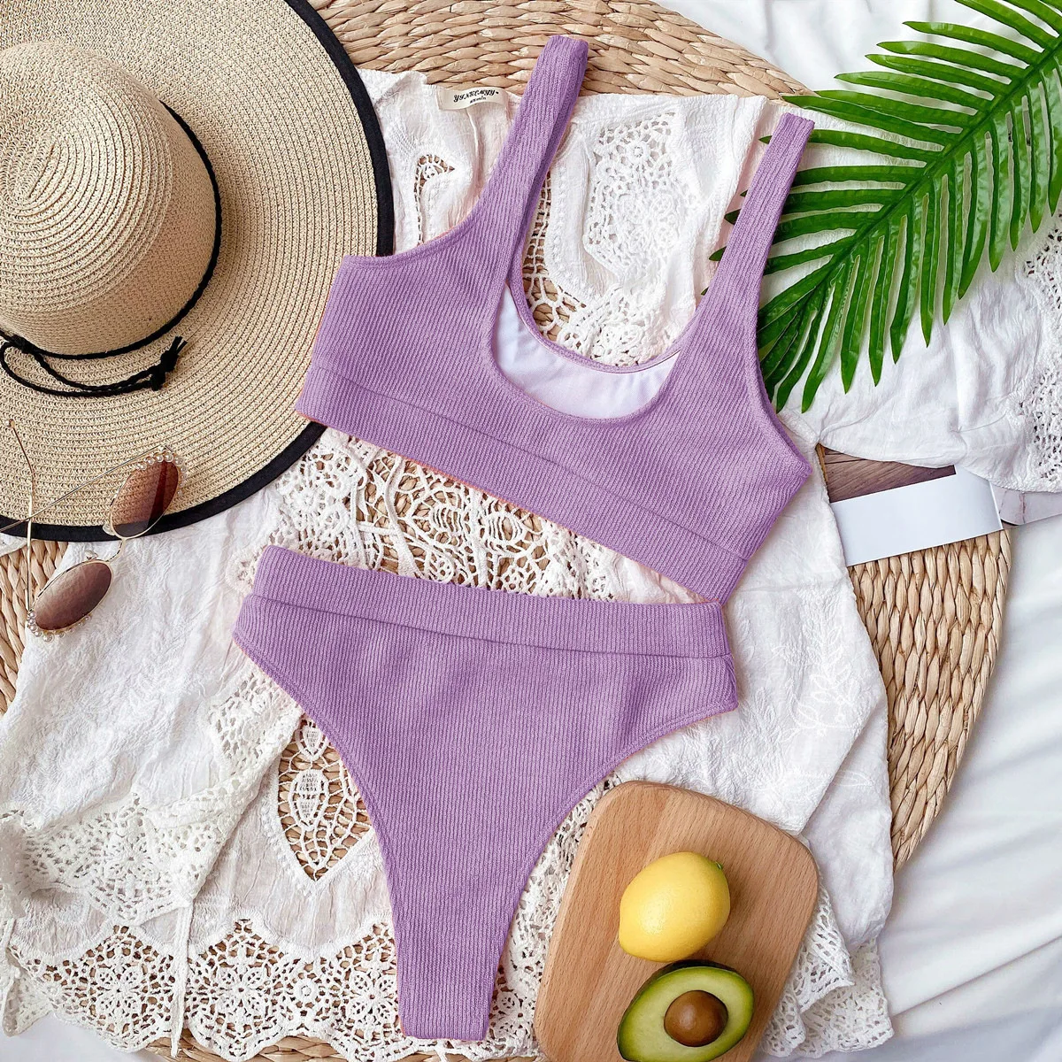Соблазнительный комплект бикини, женский купальник-бандо, купальник, женская бразильская пляжная одежда с высокой талией, спортивные купальные костюмы в рубчик, Новинка
