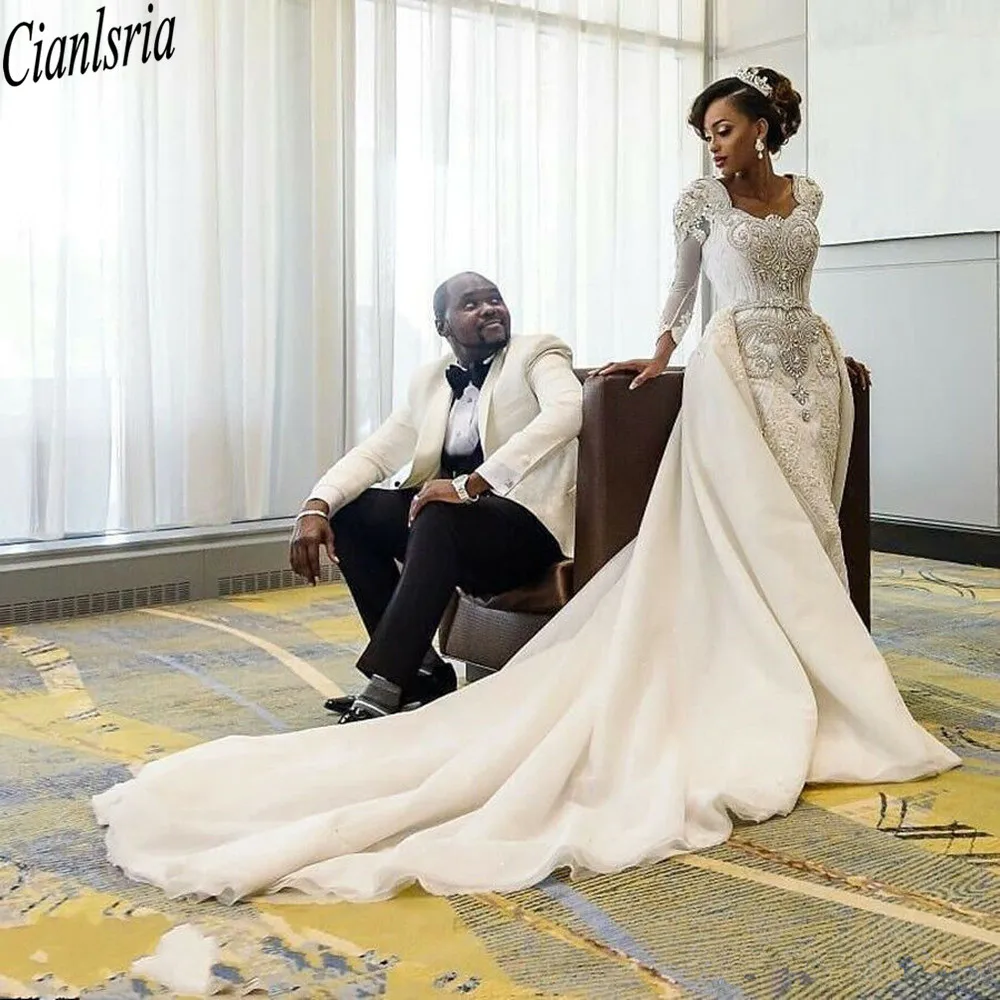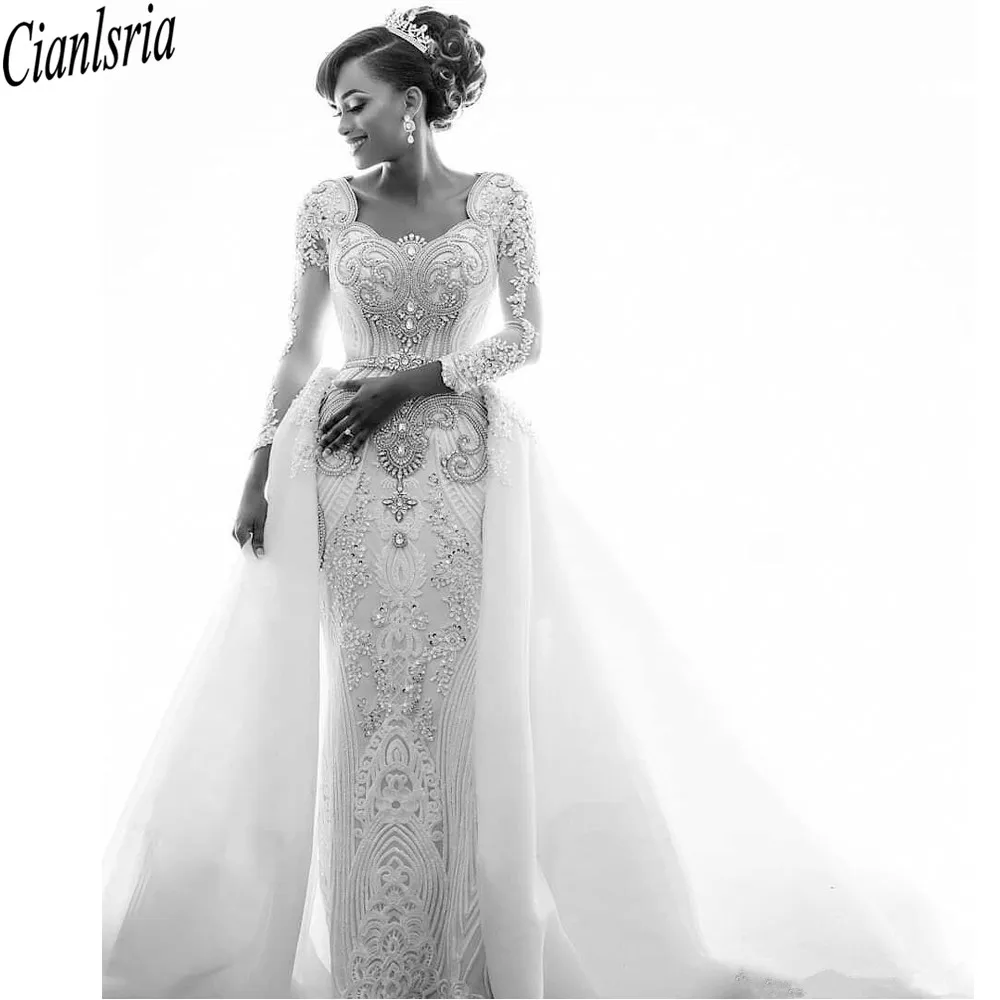 Женское свадебное платье с длинным шлейфом, платье с длинными рукавами и бусинами в арабском стиле