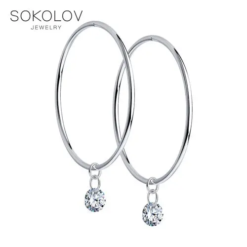 Серьги SOKOLOV из серебра с фианитами, Серебро, 925, Женские, Серьг...