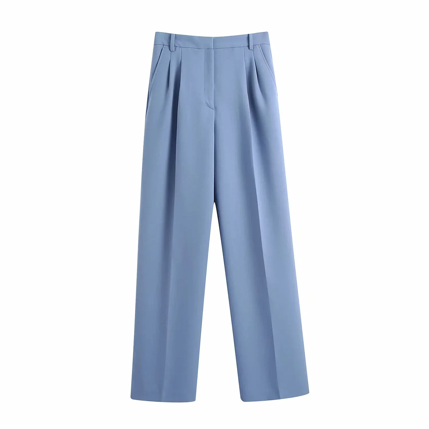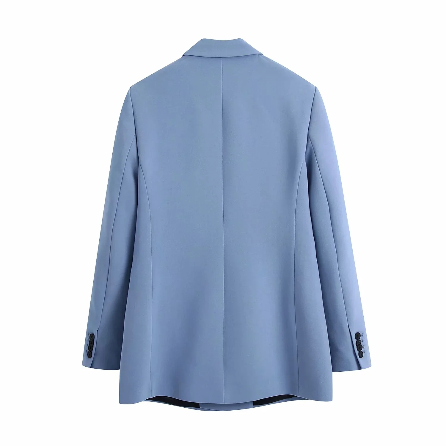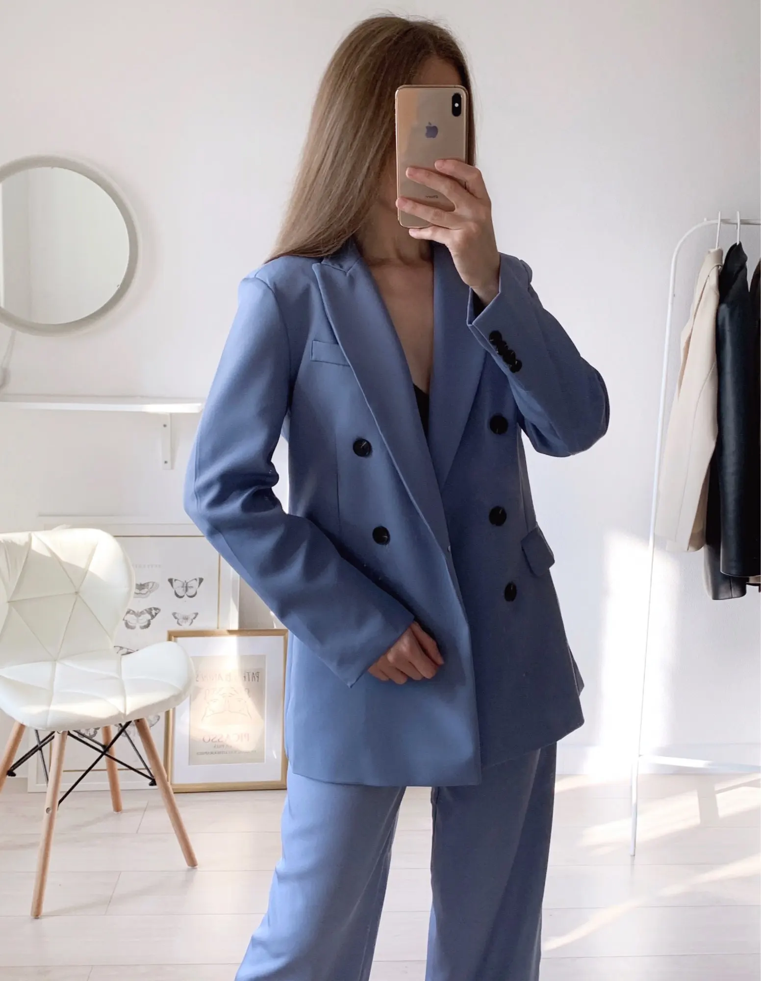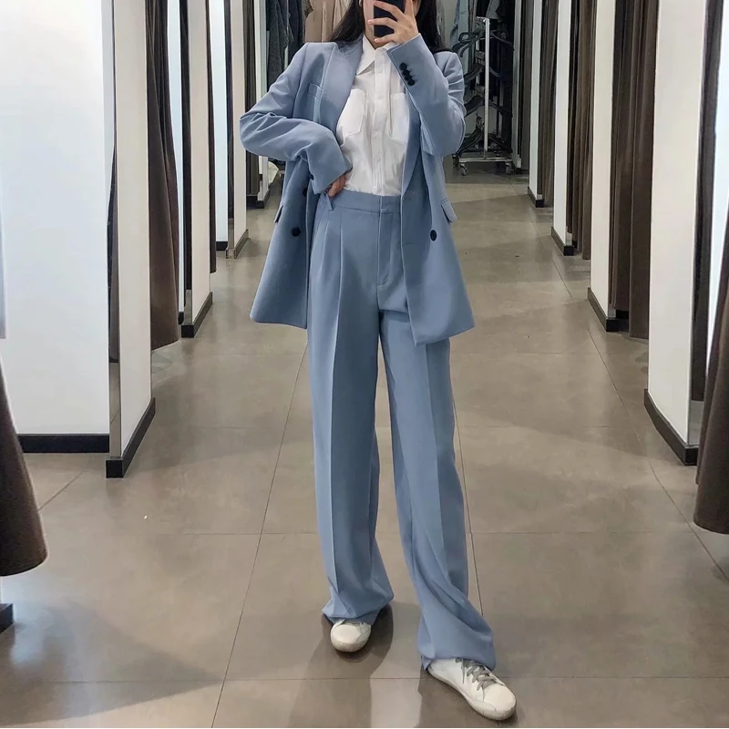 Женский комплект из 2 предметов, однотонный двубортный пиджак и брюки с высокой талией, повседневный брючный костюм синего цвета, осень 2022