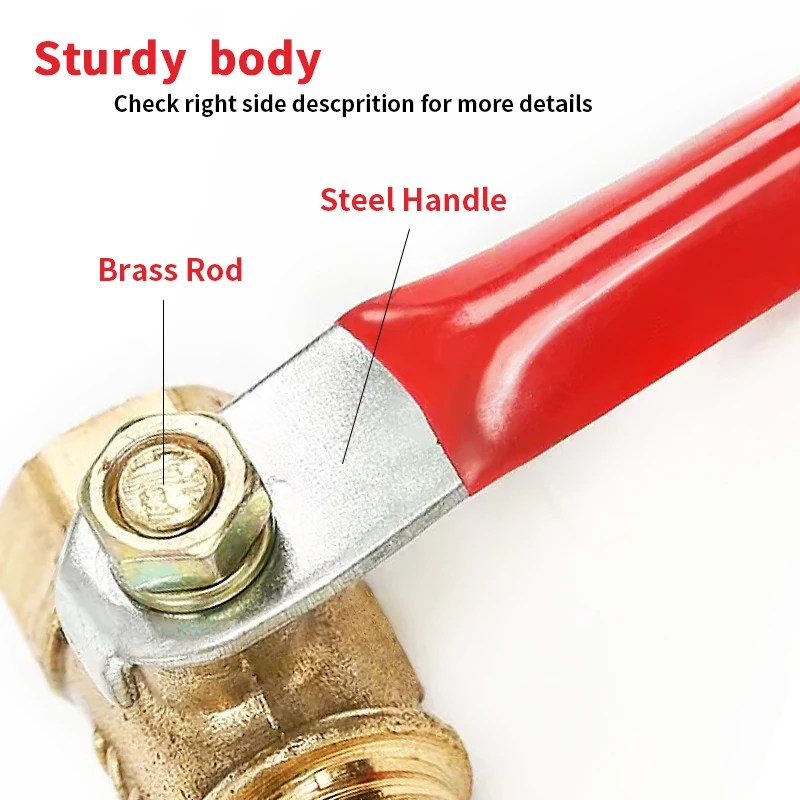 Спецификация:Название продукта: шаровой клапанВнутренняя резьба/наружная резьба Размеры: (9,7 мм) G1/8 ''(12,7 мм) G1/4 дюйма (16 мм) G3/8'' (20 мм) G1/2''Основной Цвет: золотистый, красныйМатериал: металл, латунь, пластикПосылка: шаровой клапан-1 шт.