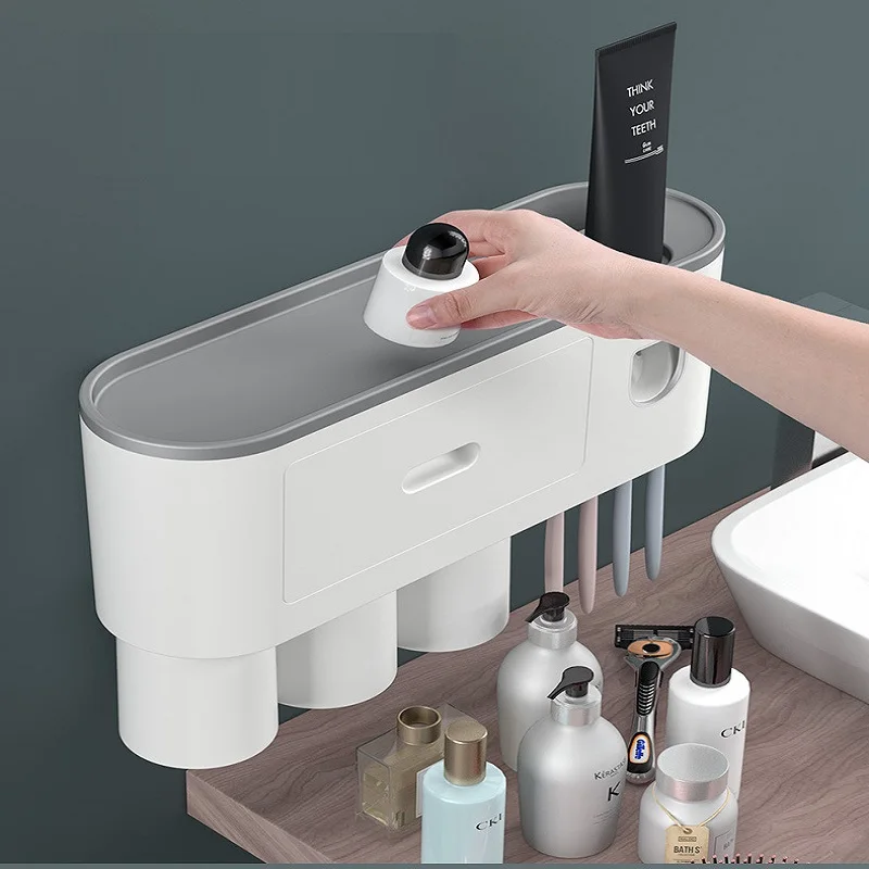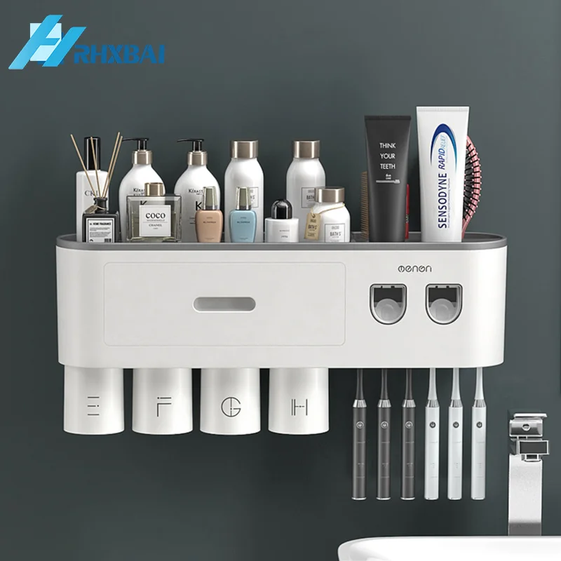 Настенный автоматический дозатор для зубной пасты держатель для зубной щетки Магнитная Адсорбция перевернутая Подставка для хранения чашек аксессуары для ванной комнаты