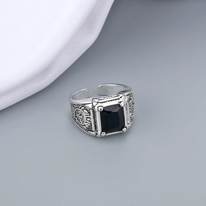 Корейские индивидуальные регулируемые Открытые Кольца винтажные черные квадратные мужские кольца на палец модные ювелирные изделия в подарок