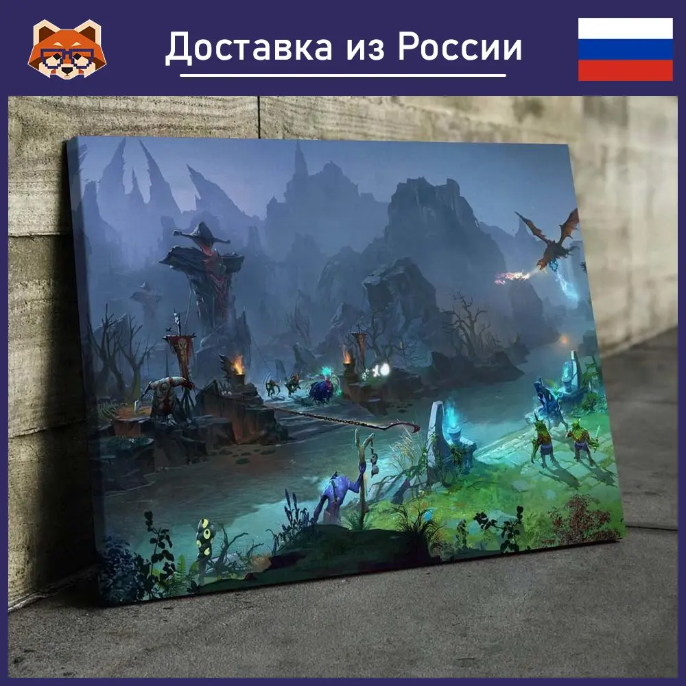 Картина Dota 2 - Бой красочная Картина на холсте, современный домаш...