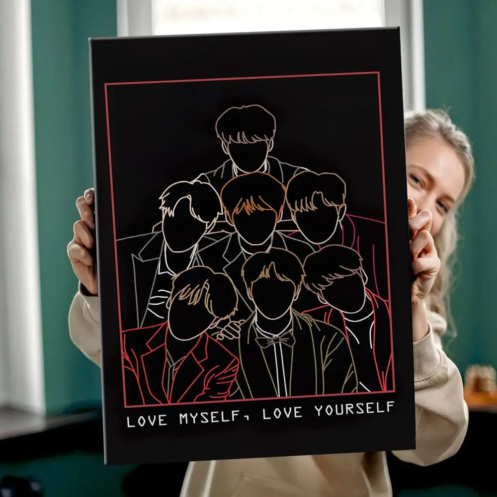 Картина BTS Силуэты красочная Картина на холсте, современный домашний декор комнаты