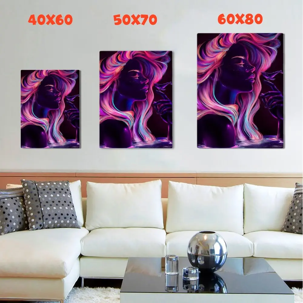 Картина Неоновая Женщина красочная Картина на холсте, современный домашний декор комнаты