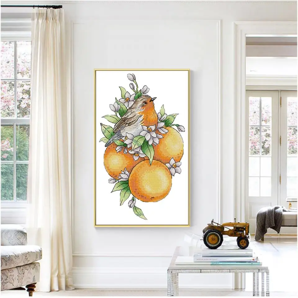 Птица на lemon фрукты вышивка крестиком Наборы 14CT 11CT животный узор количество Набор для вышивки DIY рукоделие украшения дома картины