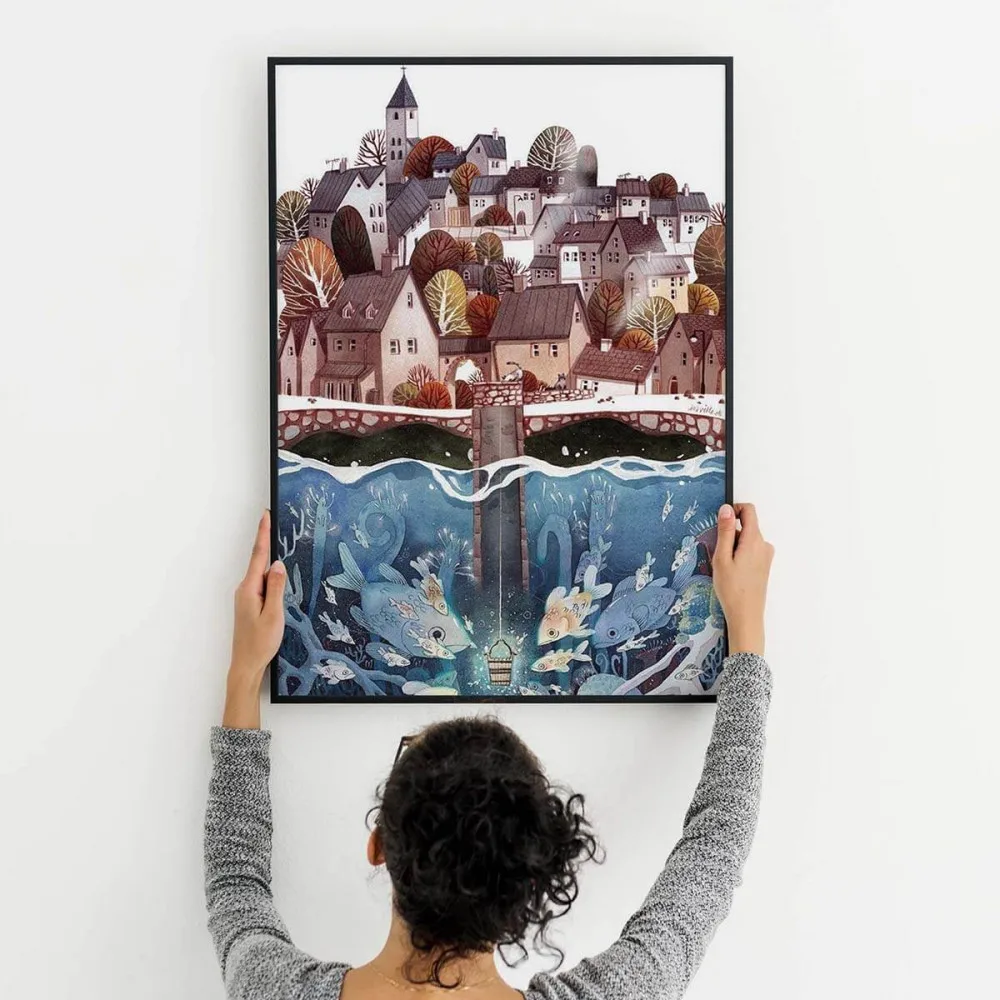 Картина Городской колодец красочная Картина на холсте, современный домашний декор комнаты