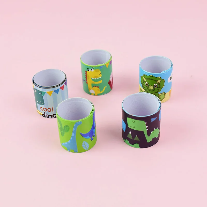 10 шт.лот динозавр шлепок оснастки обернуть браслет кольцо на руку для дня рождения вечерние подарок детей Ванна пользу сувенир милые бесплатной раздачи