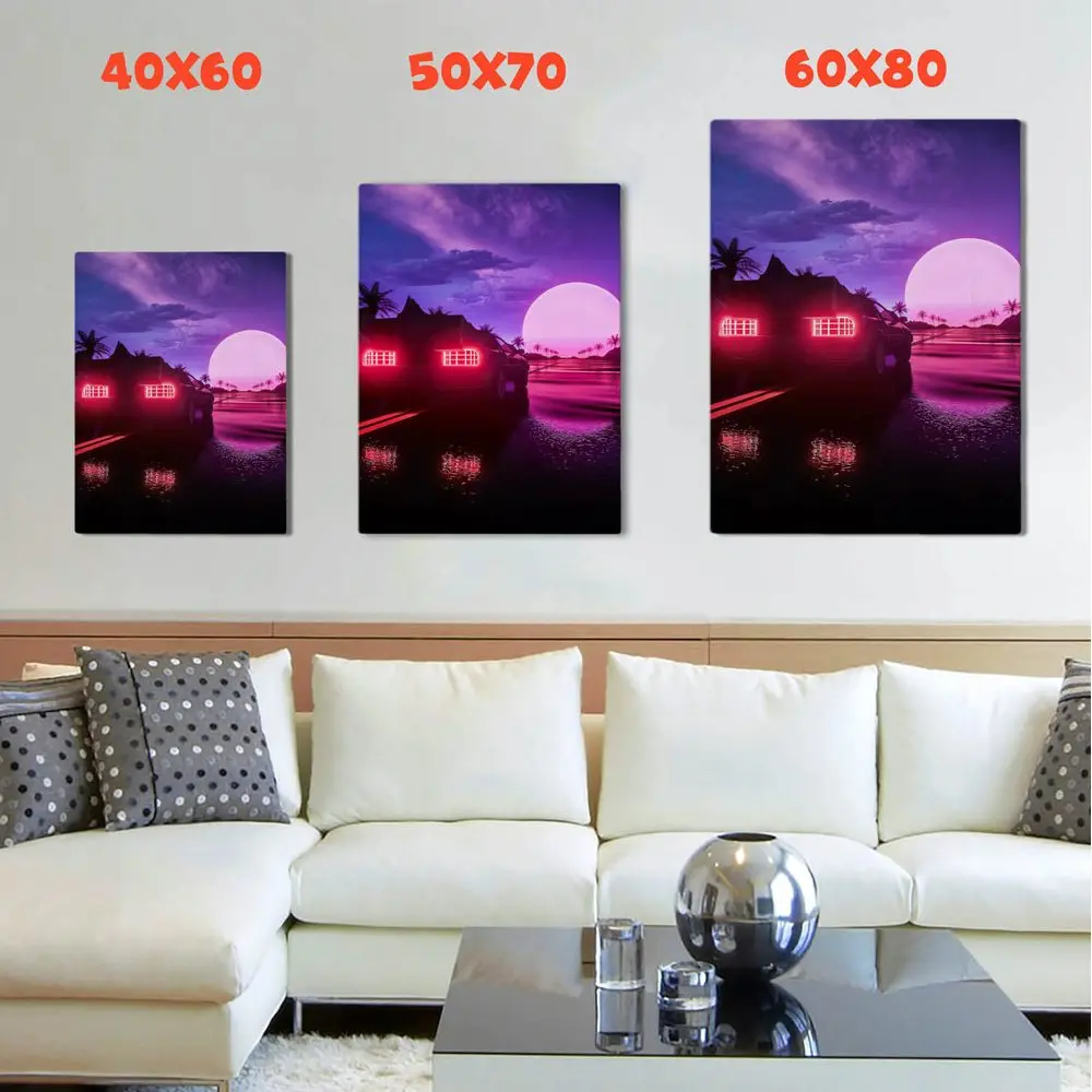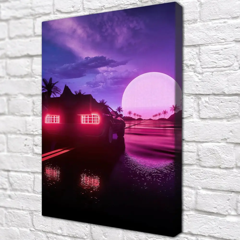 Картина Ретровейв - Делореан красочная Картина на холсте, современн...