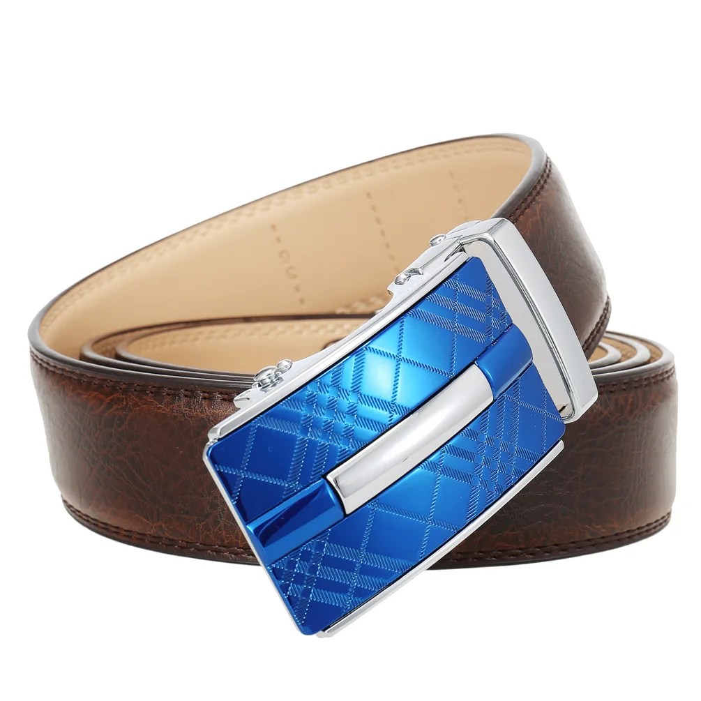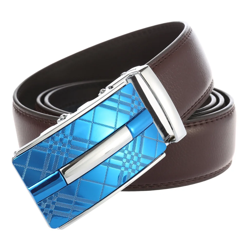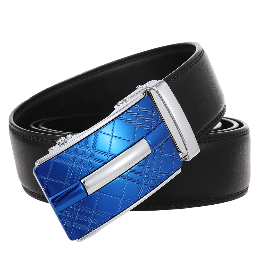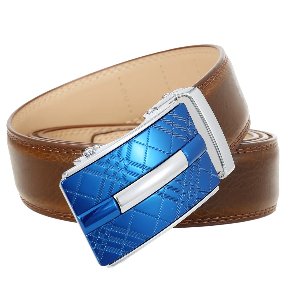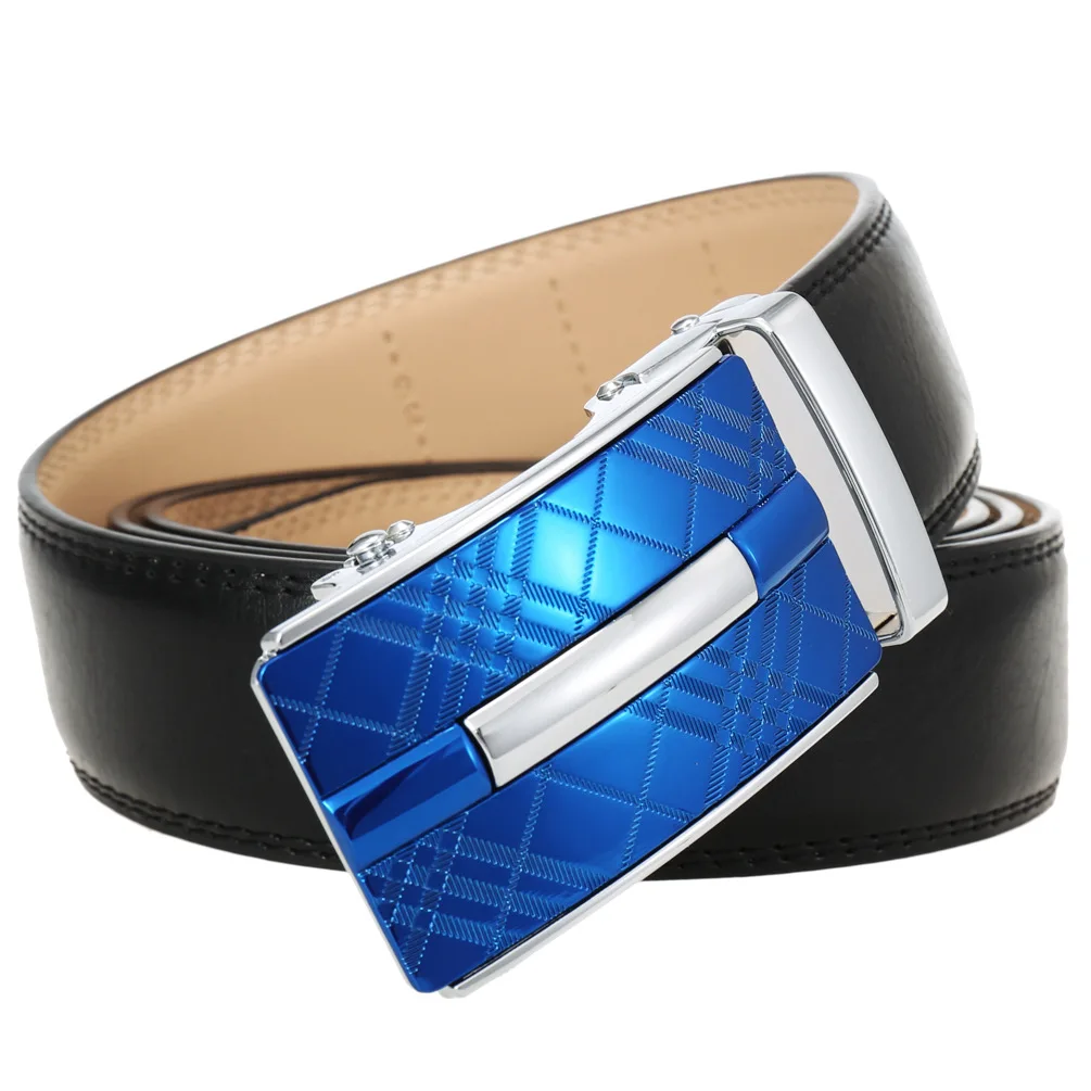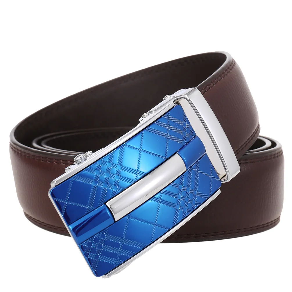 Ремень мужской из натуральной кожи с автоматической пряжкой, модный пояс для джинсов, синий