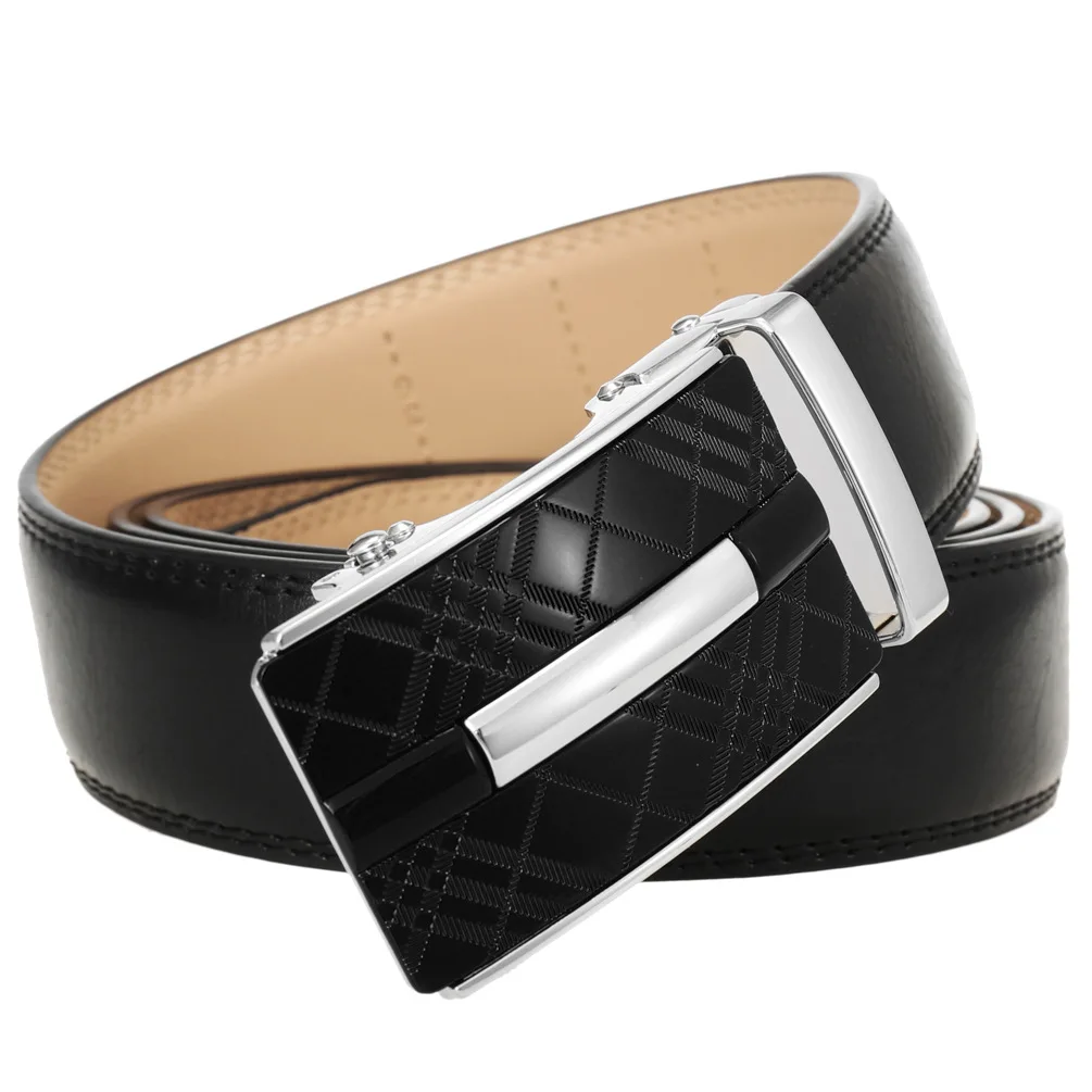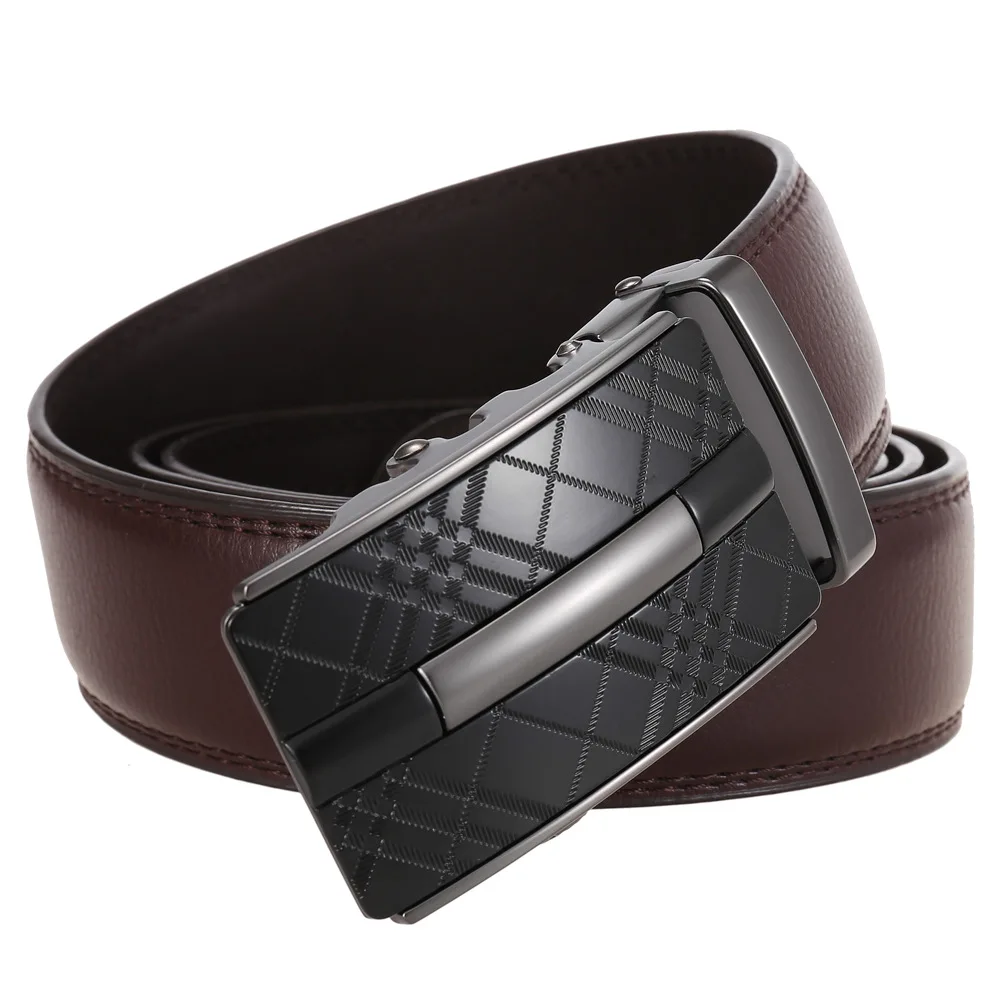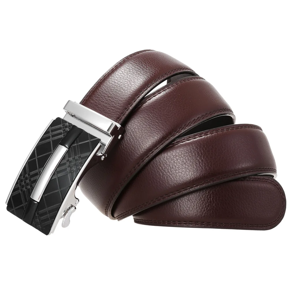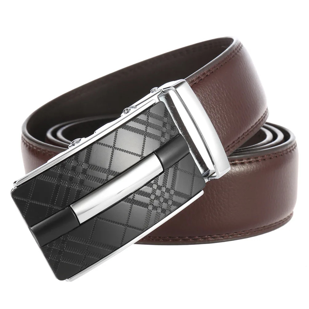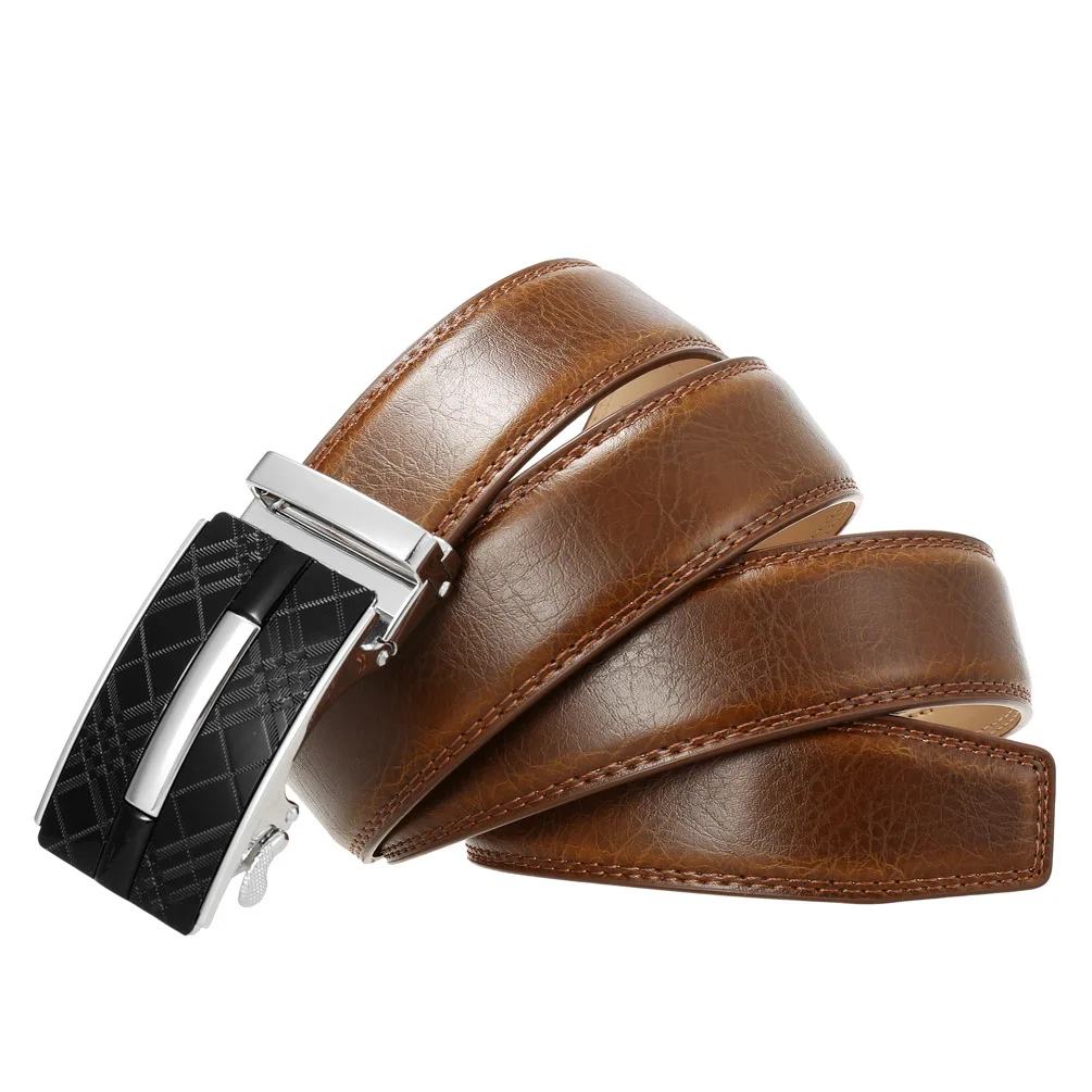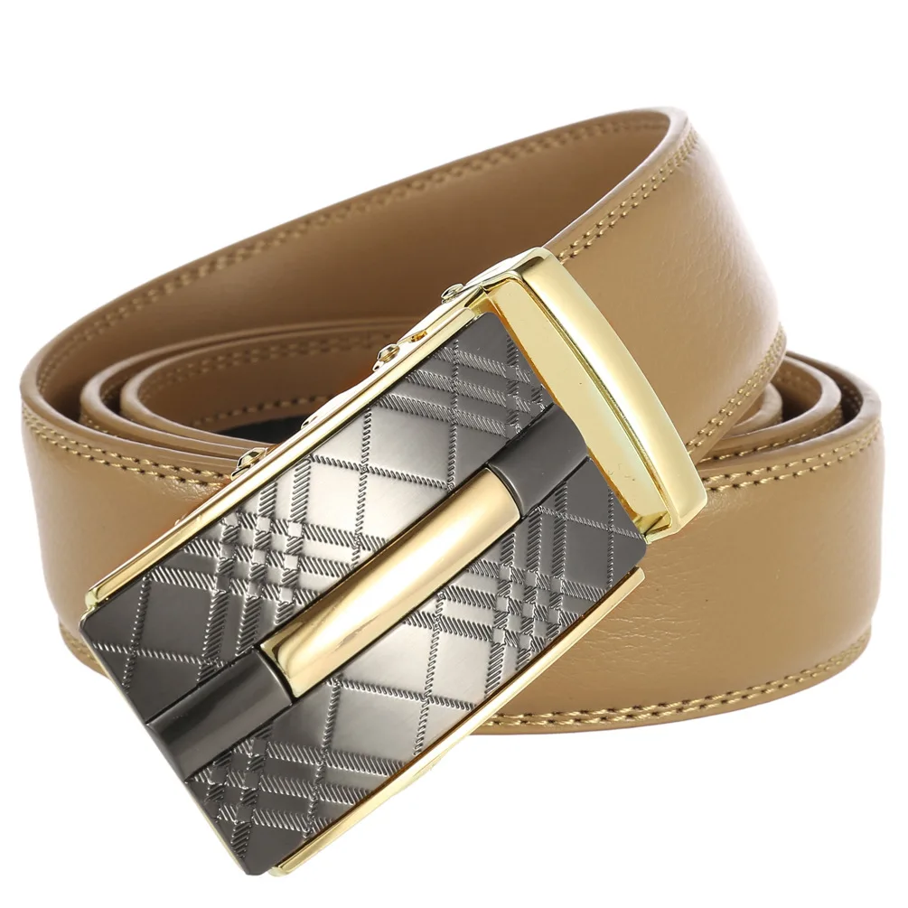 Ремень мужской из натуральной кожи с автоматической пряжкой, модный пояс для джинсов, синий
