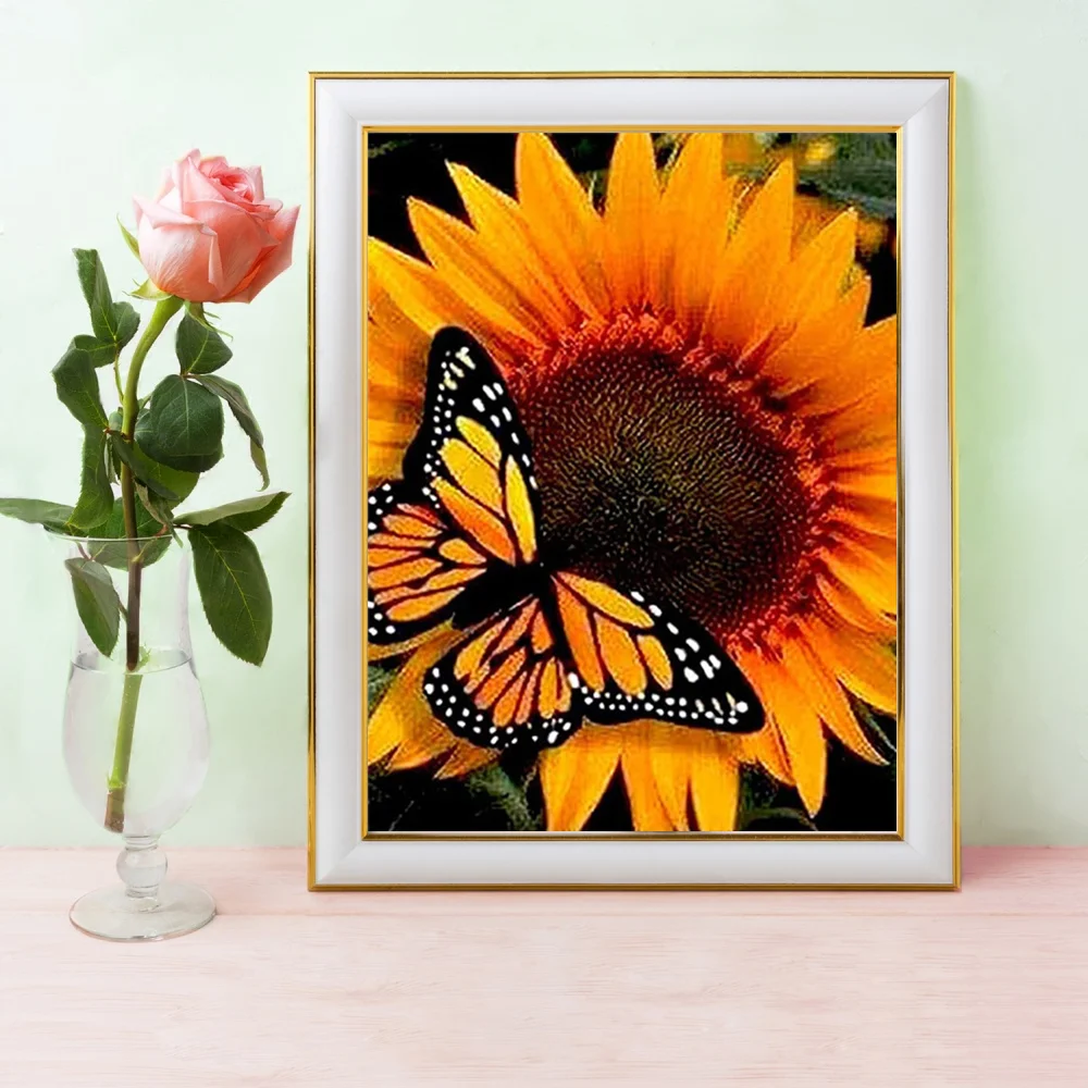 HUACAN 5d алмазная Картина Новое поступление Цветочная Алмазная вышивка распродажа Стразы в виде подсолнуха с бабочкой набор для рукоделия