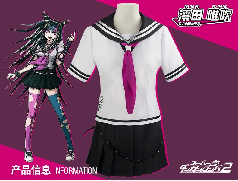 косплей данганронра Danganronpa ибуки миода косплей миу ирума косплей микан цумики косплей chiaki nanami cosplay джунко эношима косплей чиаки нанами косплей Матрос Костюм Горничной JK Школьная форма Платье Горничной Юб