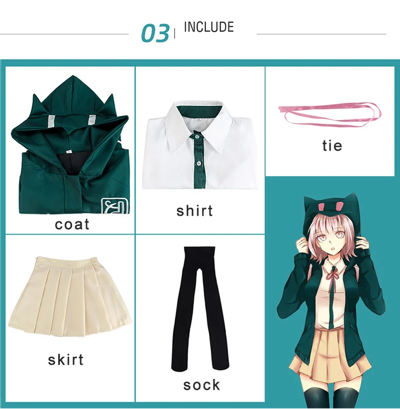 Danganronpa V3 yasuhiro taeko джунко эношима Nanami ChiaKi Mikan Tsumiki Mioda Ibuki IU Iruma Harukawa Maki Angie Yonaga, костюм для косплея, Женский костюм JK, костюм с юбкой и бюстгальтером, милый Карнавальный костюм для девочек на Хэллоуин