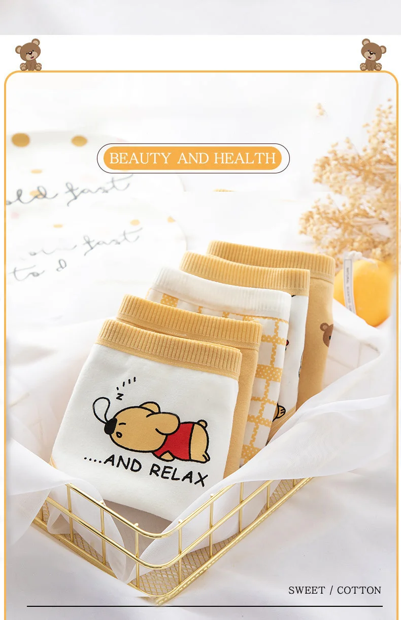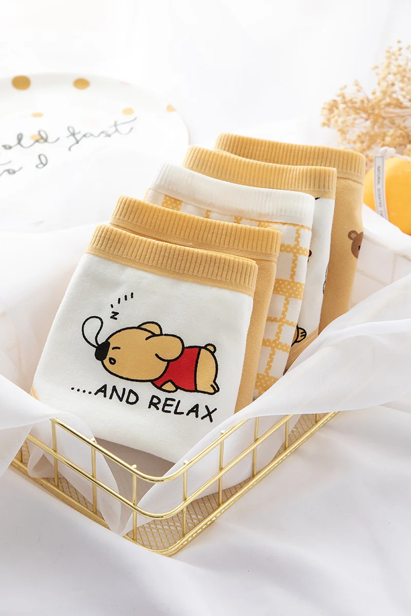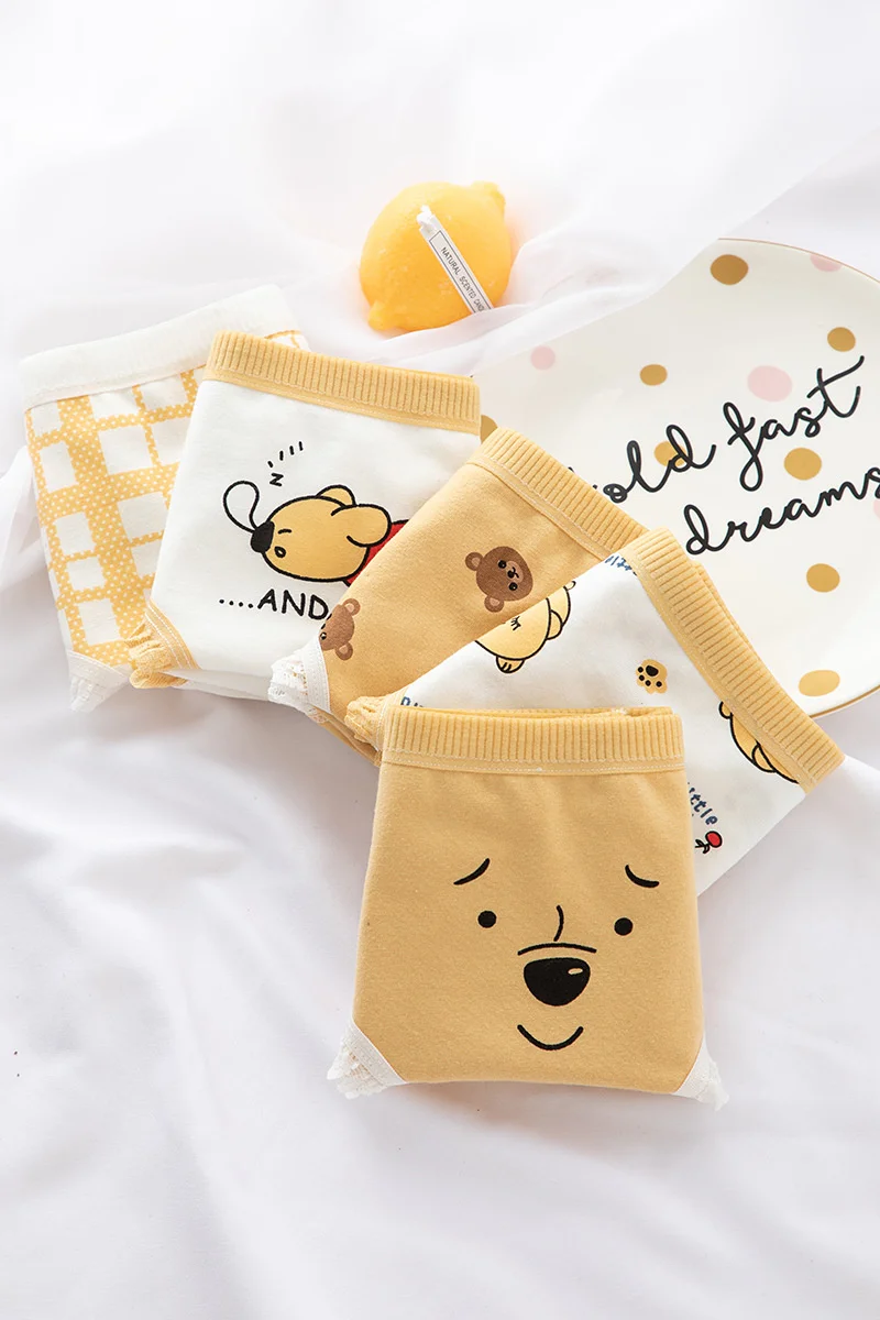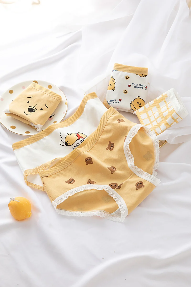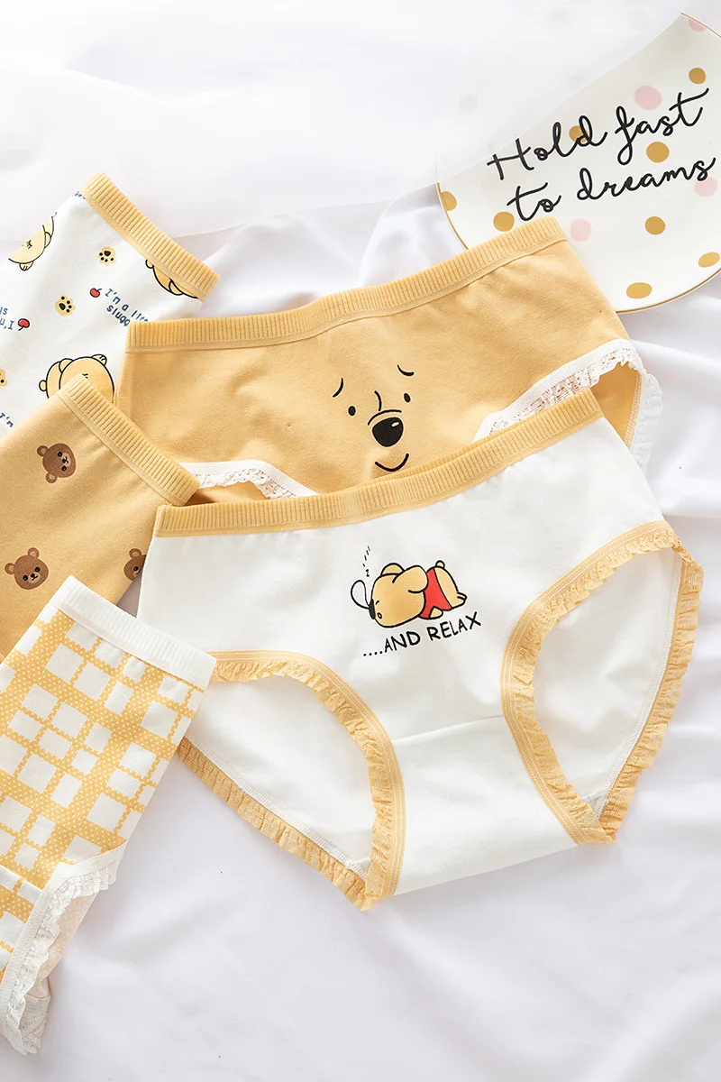 Трусики женские Anewmorn, из чистого хлопка, кружевные, со средней посадкой, с рисунком медведей, в японском стиле, M-XL