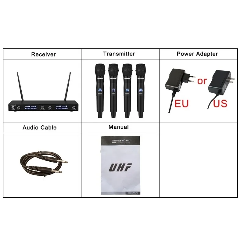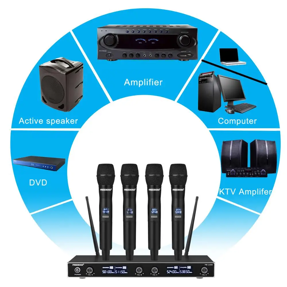 FREEBOSS FB-U400 UHF фиксированной частоты караоке Беспроводной микрофон, Профессиональный 4 беспроводной ручной микрофон 4 канала беспроводные