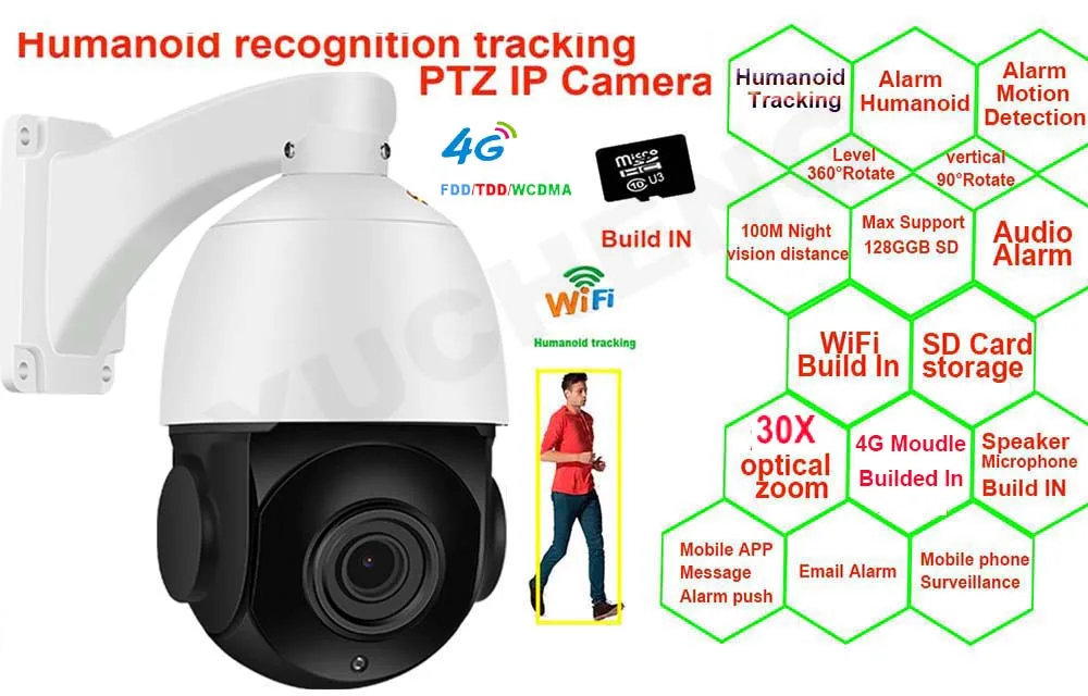SONY IMX335 4G + WIF Беспроводная 5MP Автотрек 30X зум Hikvision протокол распознавания людей Wi-Fi PTZ скоростная купольная IP-камера безопасности