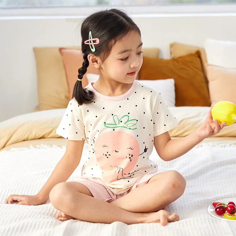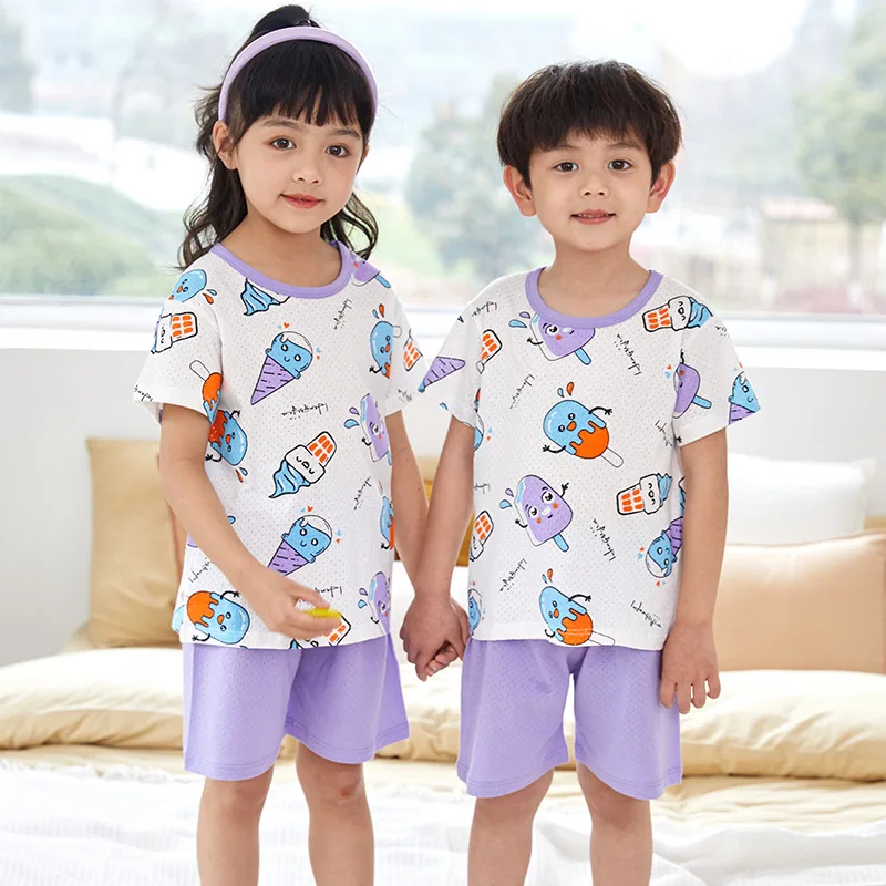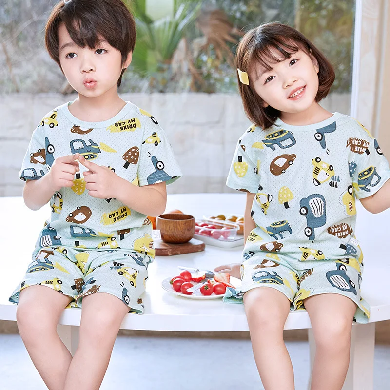 Пижама детская хлопковая с коротким рукавом, для мальчиков и девочек