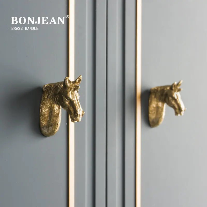Ручка Bonjean из твердой латуни с животными, винтажная ручка для выдвижных ящиков шкафа с лошадью ручки Фурнитура