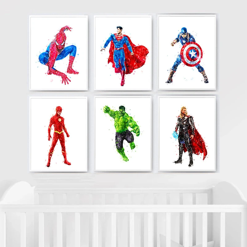 Картина на холсте с супергероями Marvel, Мстители, Человек-паук, плакаты и принты, настенные картины куадроса для детской комнаты, домашний декор