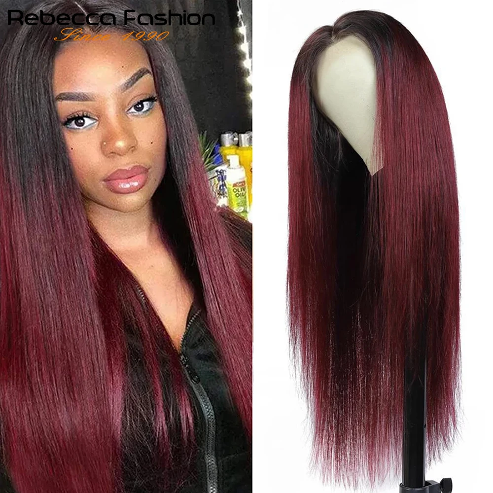 Красный 1B 99j цвет на шнурке спереди парики с детскими волосами прямые парики на шнурке перуанские волосы Remy 4x4 парик на шнурке