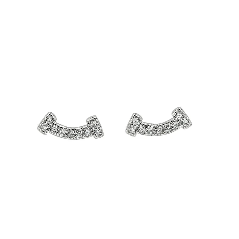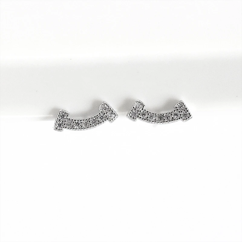 LKO Настоящее серебро 925 пробы, богемные простые серьги с улыбкой, женские серьги-гвоздики с кристаллами, модные украшения для свадебной вечеринки