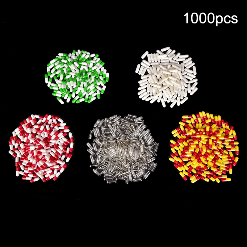 Капсулы в форме желатиновых капсул, разные цвета, 5 цветов, 1000 шт.