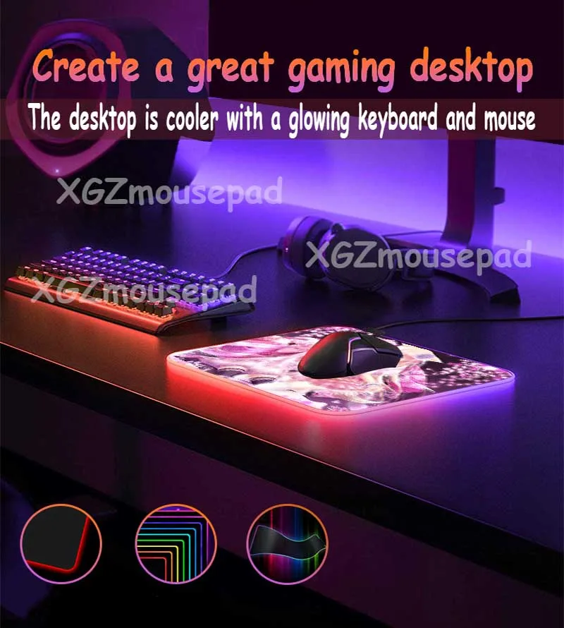 Игровой коврик для мыши с аниме RGB, большой коврик для мыши со све...