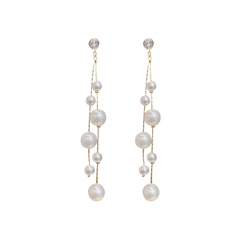 Корейская версия сережек 2021 модные новые темпераментные серьги сетка Красная дикая длинная жемчужина серьги с кисточками и кристаллами женские