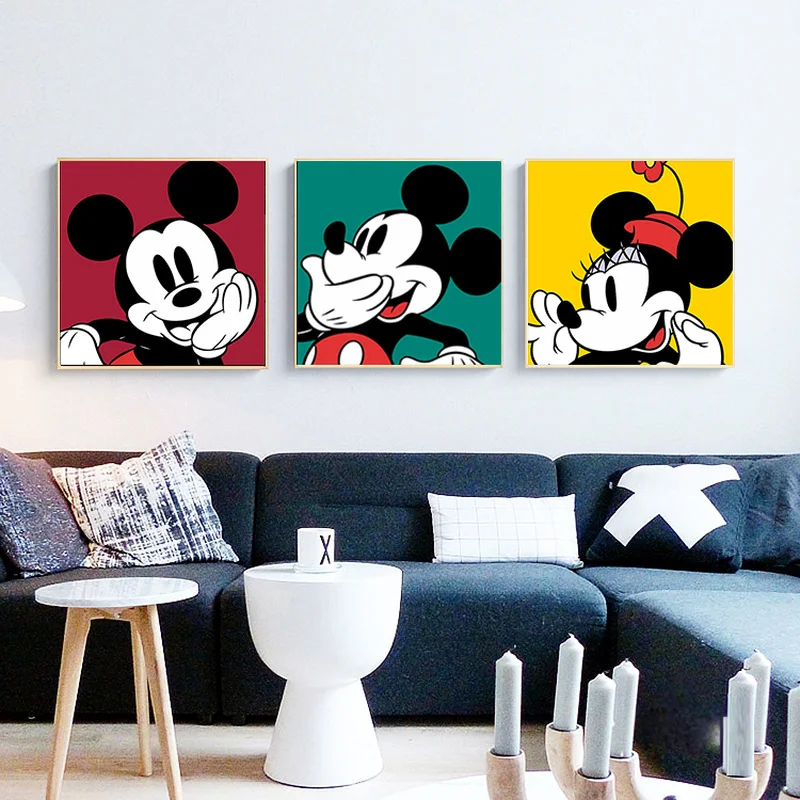 Диснеевский мультяшный холст с Микки и Минни, настенное искусство, ...