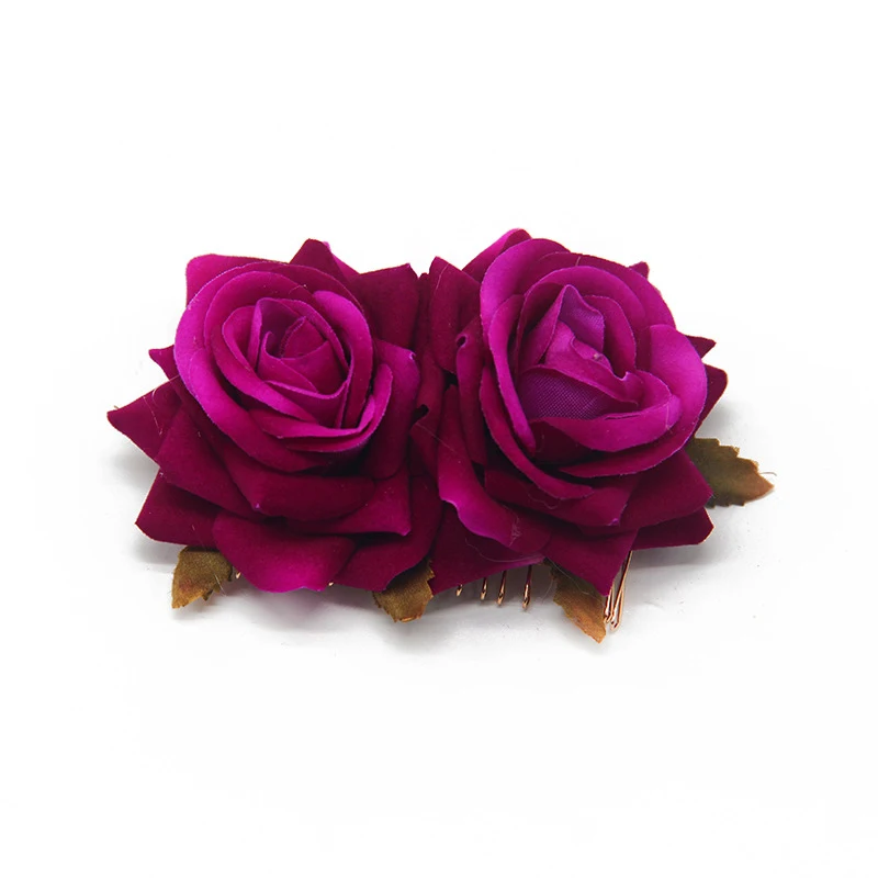 Романтичное милое двойной шелковая искусственная Роза цветок волосы расческой фиолетовый белый зажим для волос свадебные женские туфли для выпускного вечера головной убор