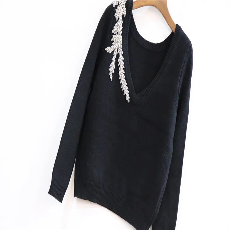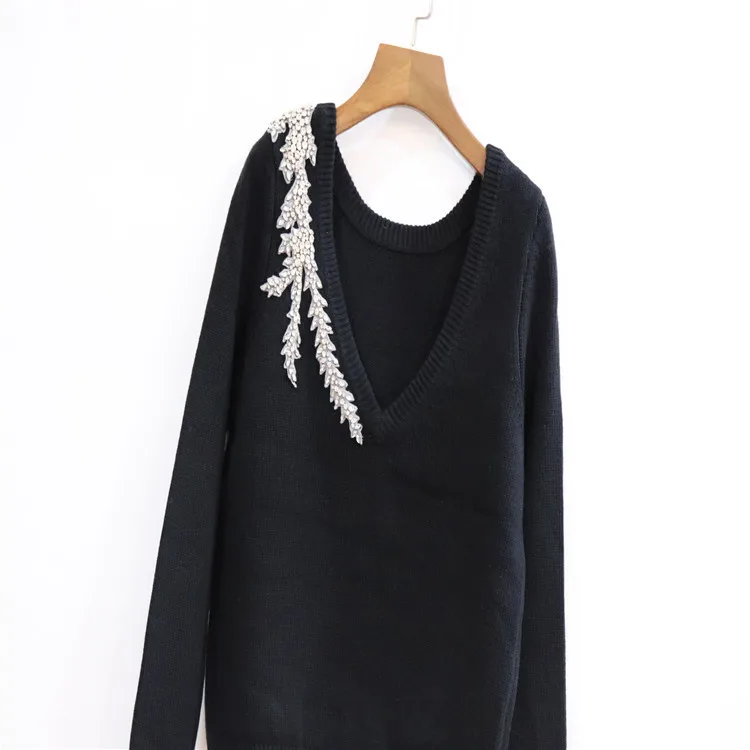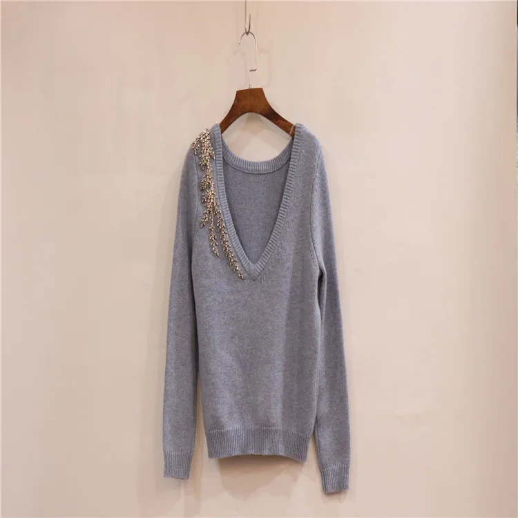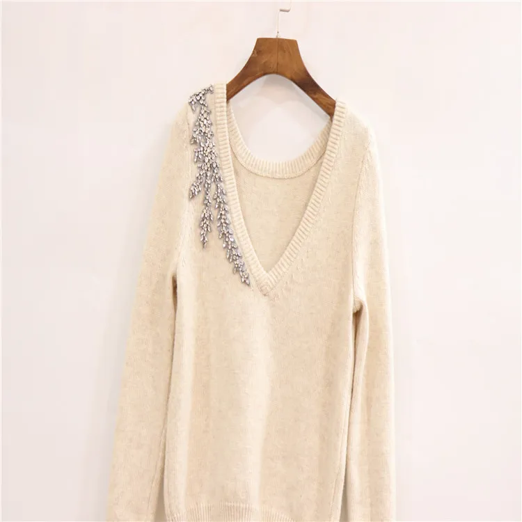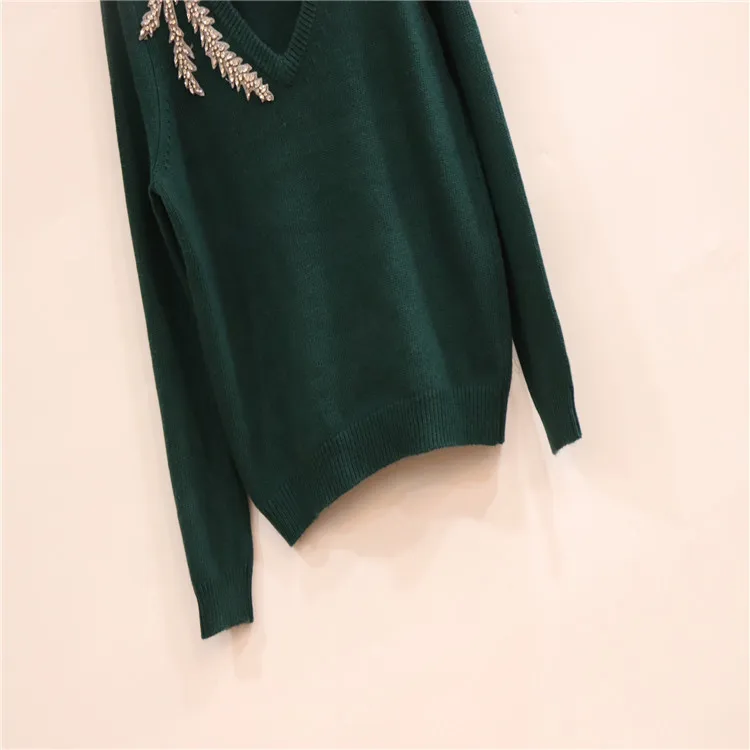 Женский трикотажный свитер с V-образным вырезом и длинным рукавом