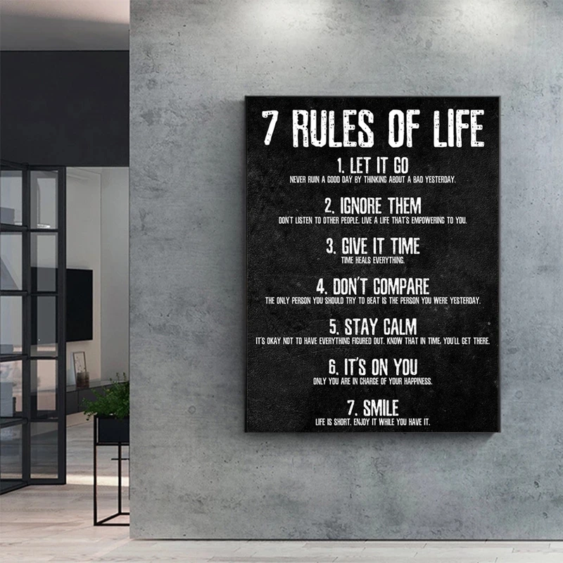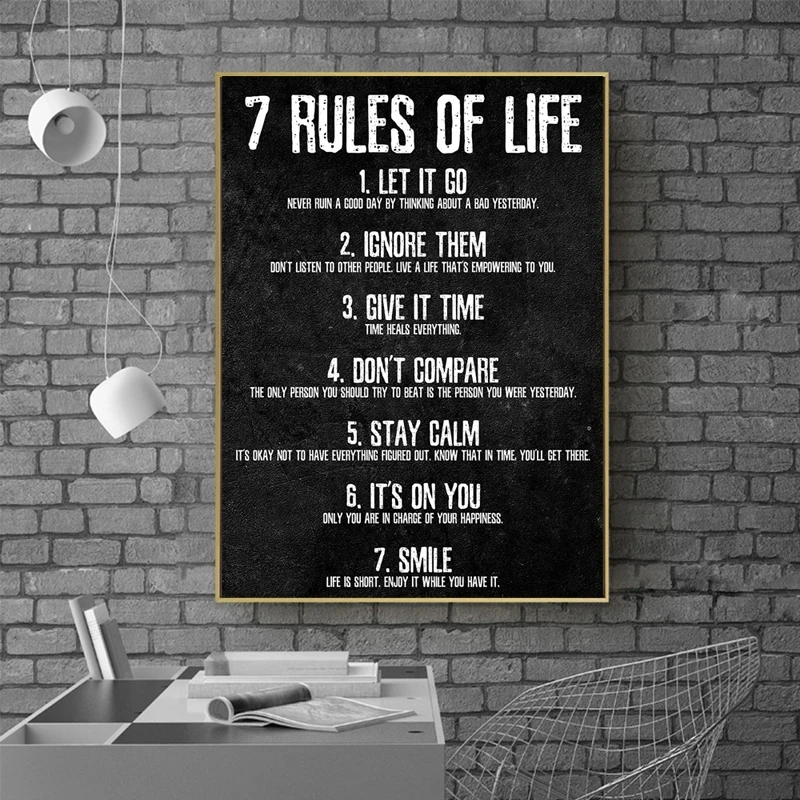 Черно-белые мотивационные плакаты и принты с 7 мотивационными правилами жизни, современные мысли, Картина на холсте, настенное искусство, картина для гостиной