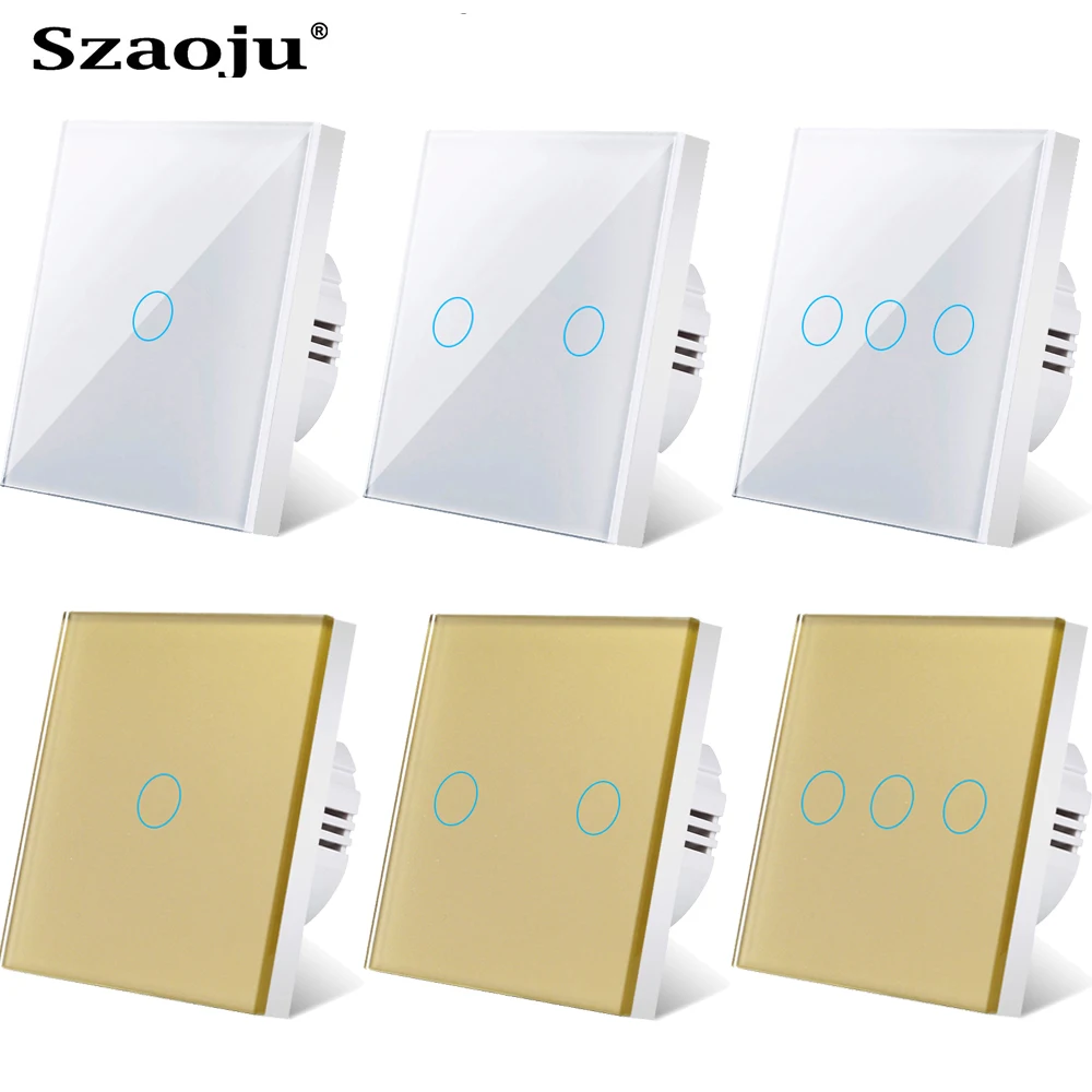 Сенсорный выключатель Szaoju европейского стандарта, настенный светильник ель из белого хрустального стекла, светодиодный индикатор, сенсорные переключатели на 123 клавиши